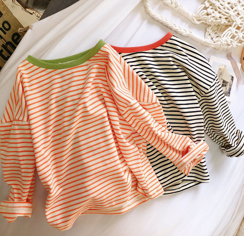 2024 년 새 소년 소녀 티셔츠 긴팔 어린이 캐주얼베이스 셔츠 봄과 가을 한국 스타일 코튼 올매치 탑 트렌디 티셔츠스토어 가기