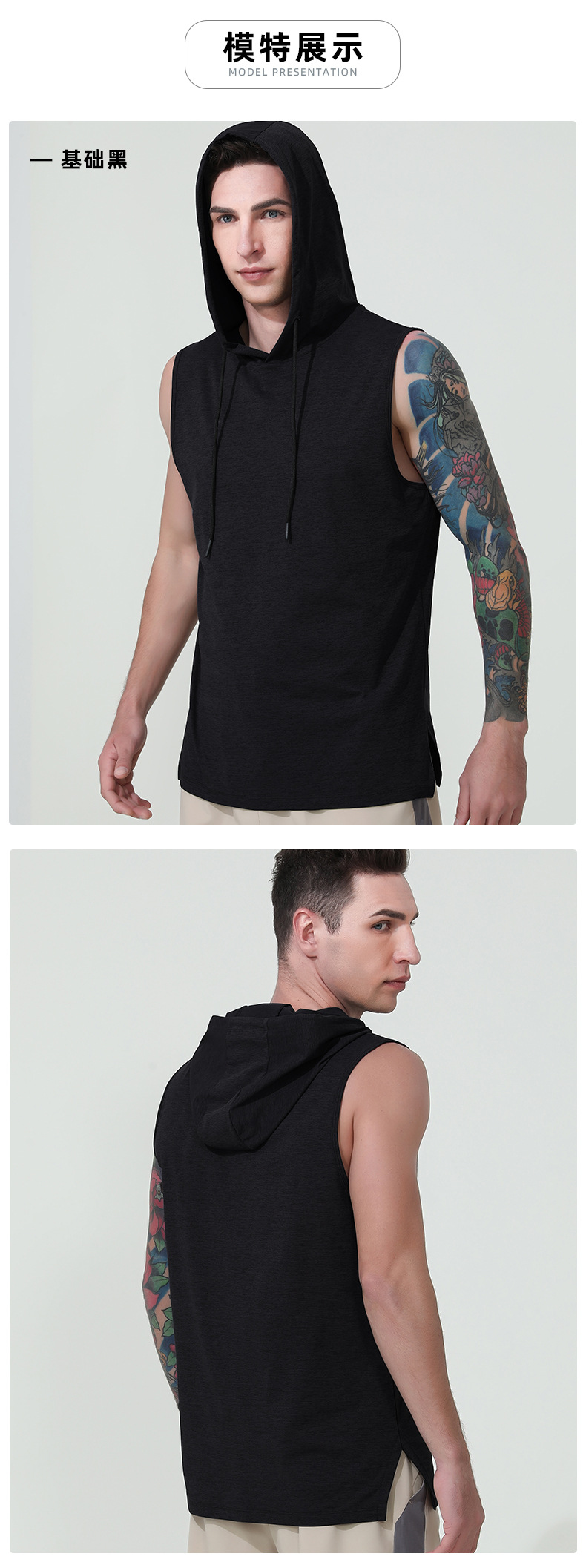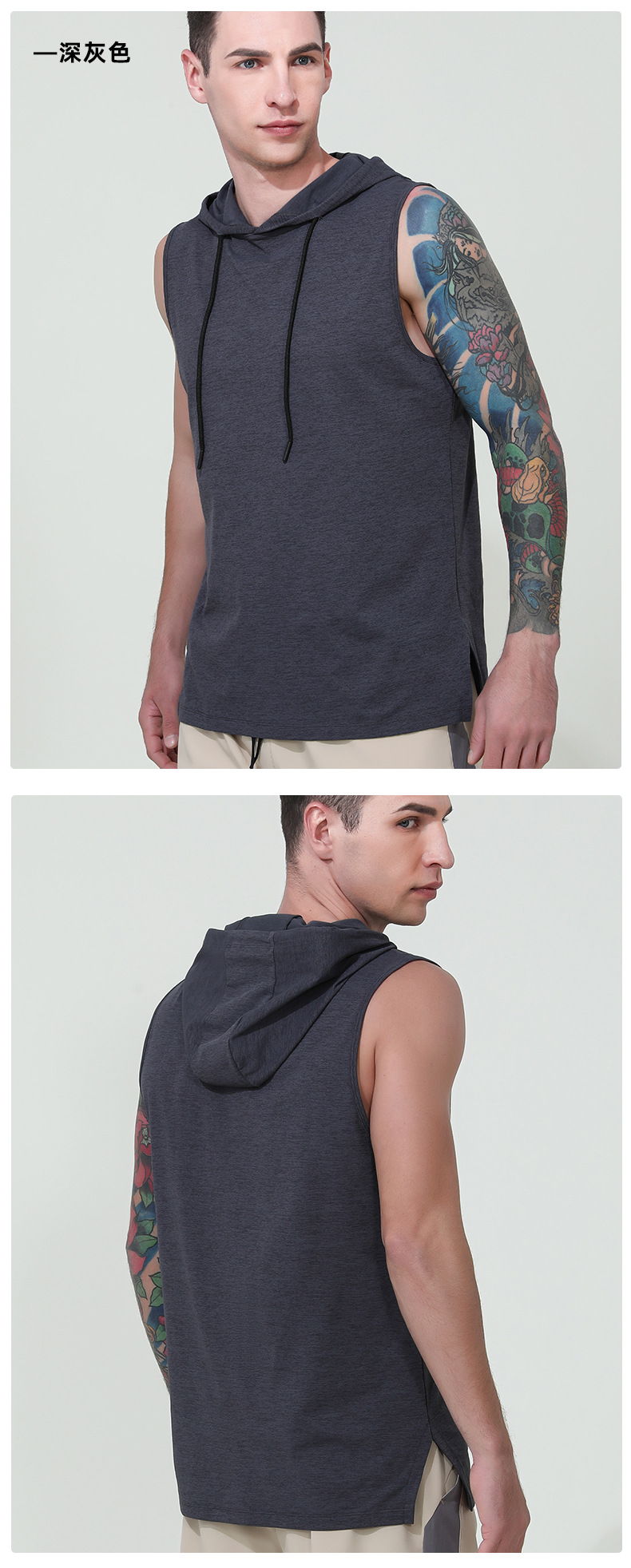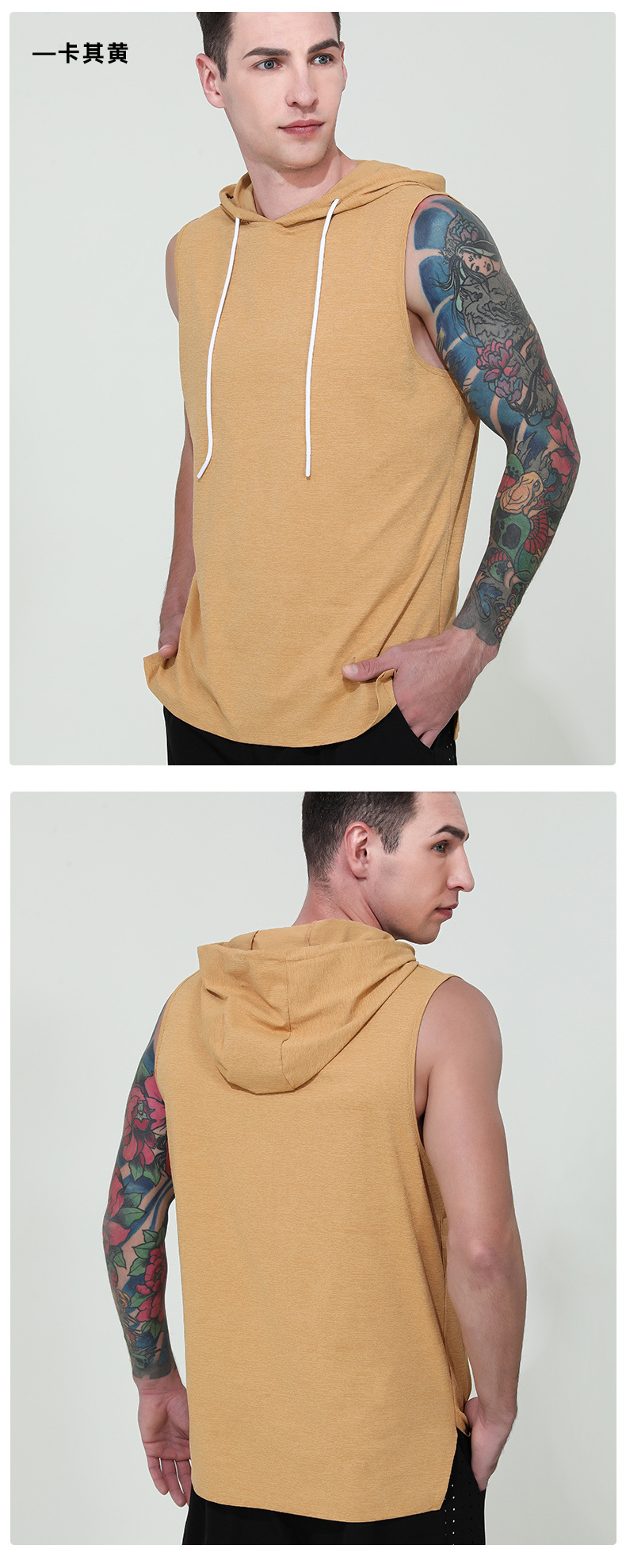 2025 새로운 남성 캐주얼 스포츠 조끼 빠른 건조 미국 후드 드로스트링 피트니스 반팔 러닝 민소매