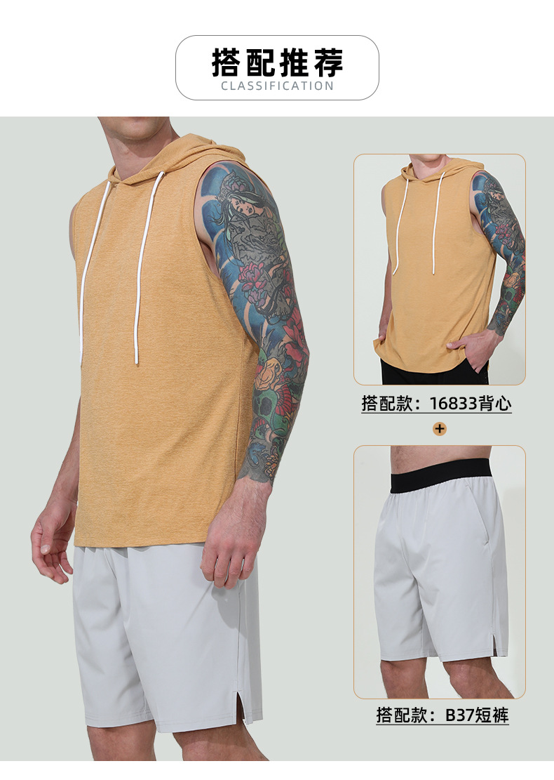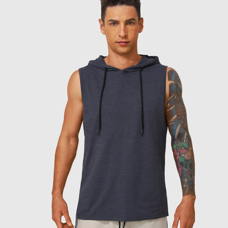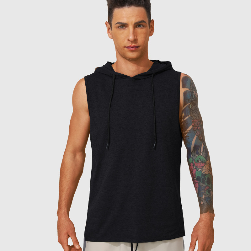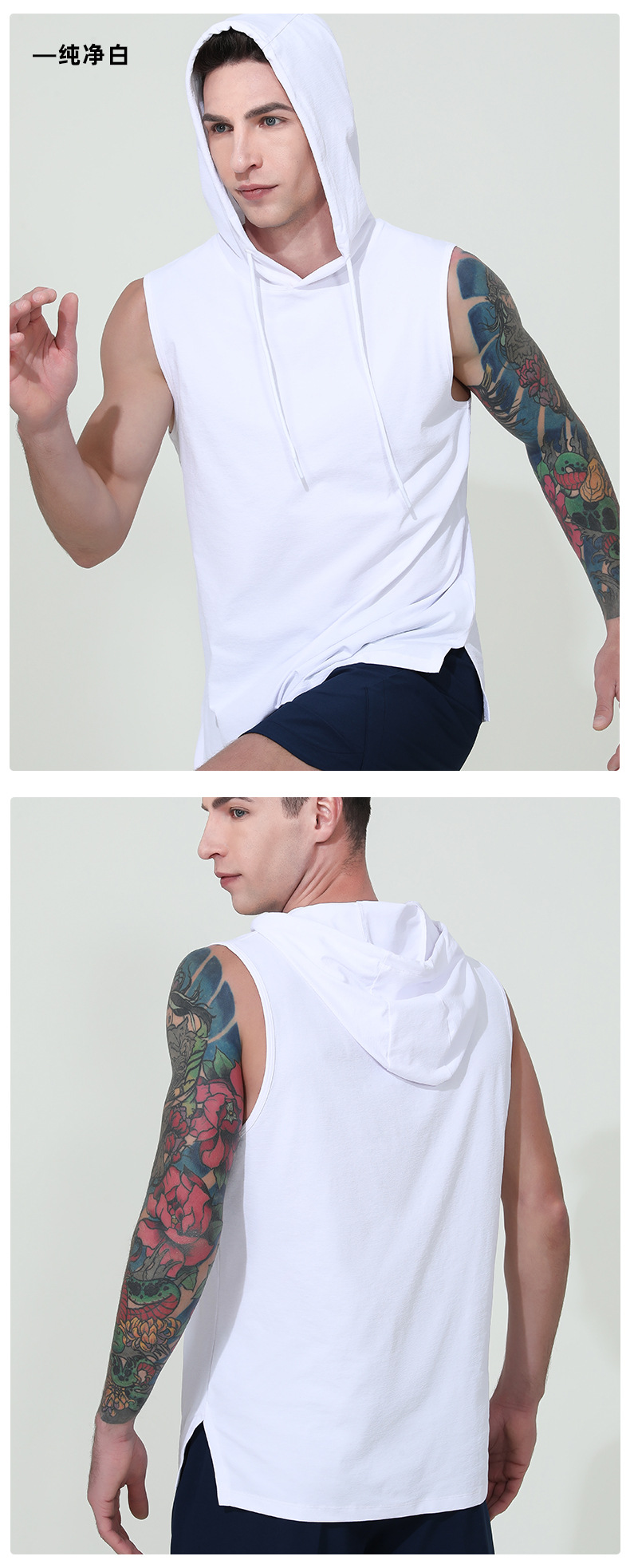 2025 새로운 남성 캐주얼 스포츠 조끼 빠른 건조 미국 후드 드로스트링 피트니스 반팔 러닝 민소매
