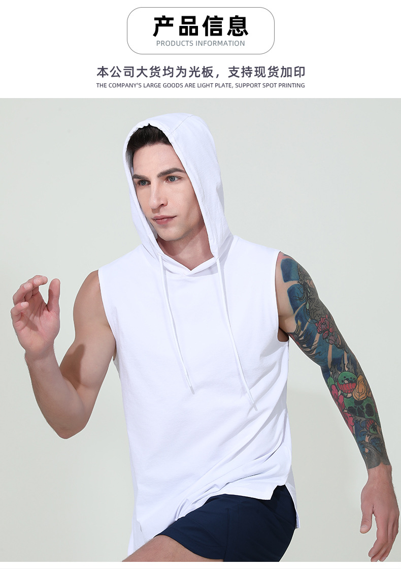 2025 새로운 남성 캐주얼 스포츠 조끼 빠른 건조 미국 후드 드로스트링 피트니스 반팔 러닝 민소매스토어 가기