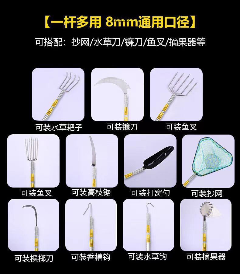 두꺼운 스테인레스 스틸 그물 복사 막대 다기능 텔레스코픽 포지셔닝 막대 피커로드 낚시 그물 복사 막대 워터 막대 공장스토어 가기