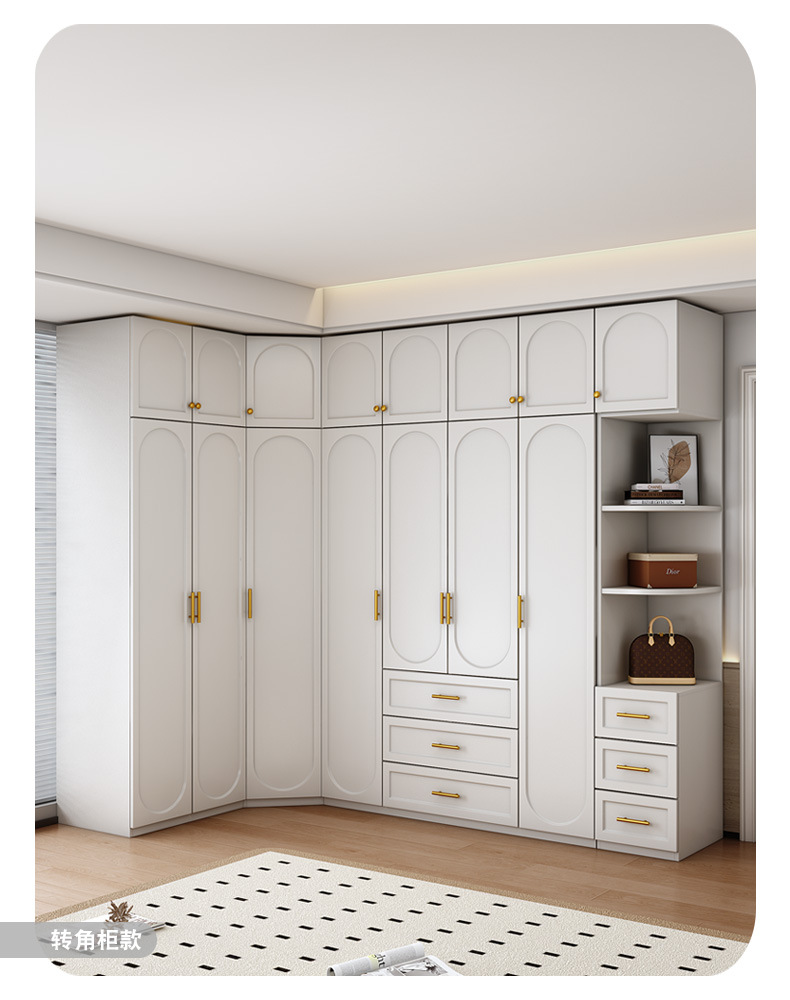 프랑스 스타일 옷장 침실 가정용 현대적인 미니멀리스트 완성 코너 옷장(화장대 책상 조합 옷장 포함)