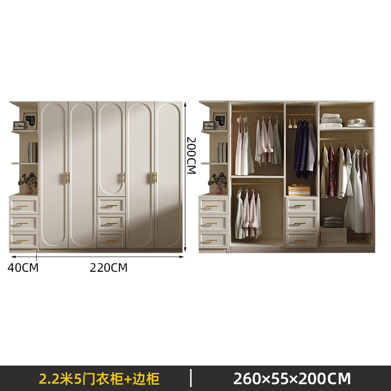 • 2.2m × 2m 높이 옷장(사이드 캐비닛 포함)