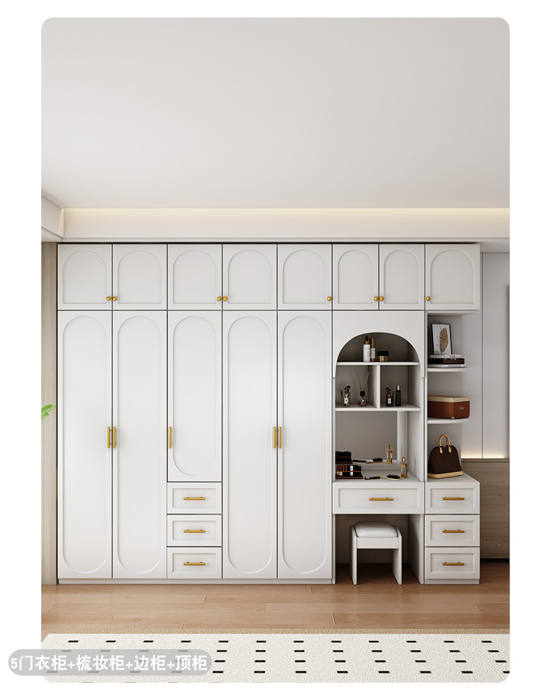 프랑스 스타일 옷장 침실 가정용 현대적인 미니멀리스트 완성 코너 옷장(화장대 책상 조합 옷장 포함)스토어 가기