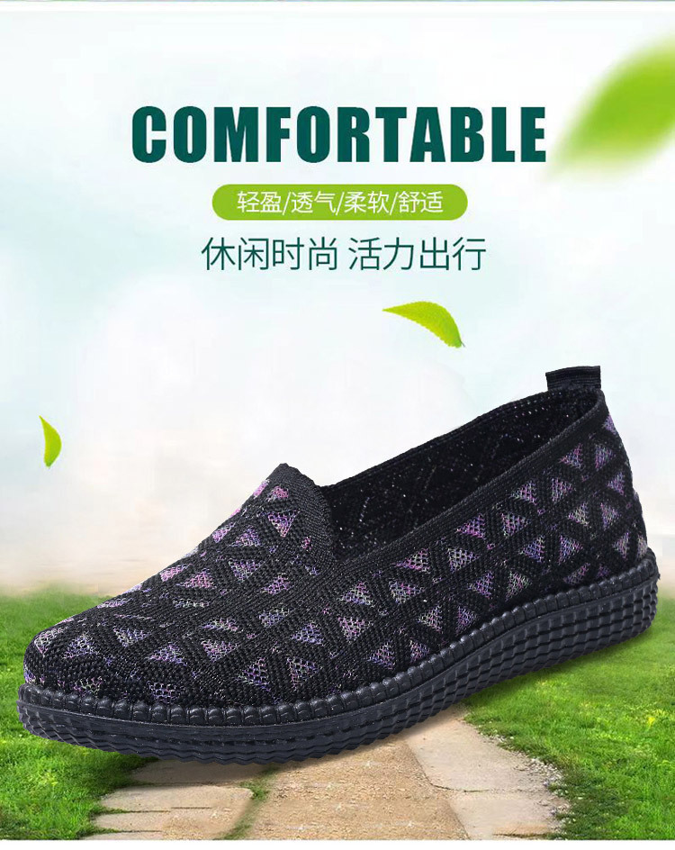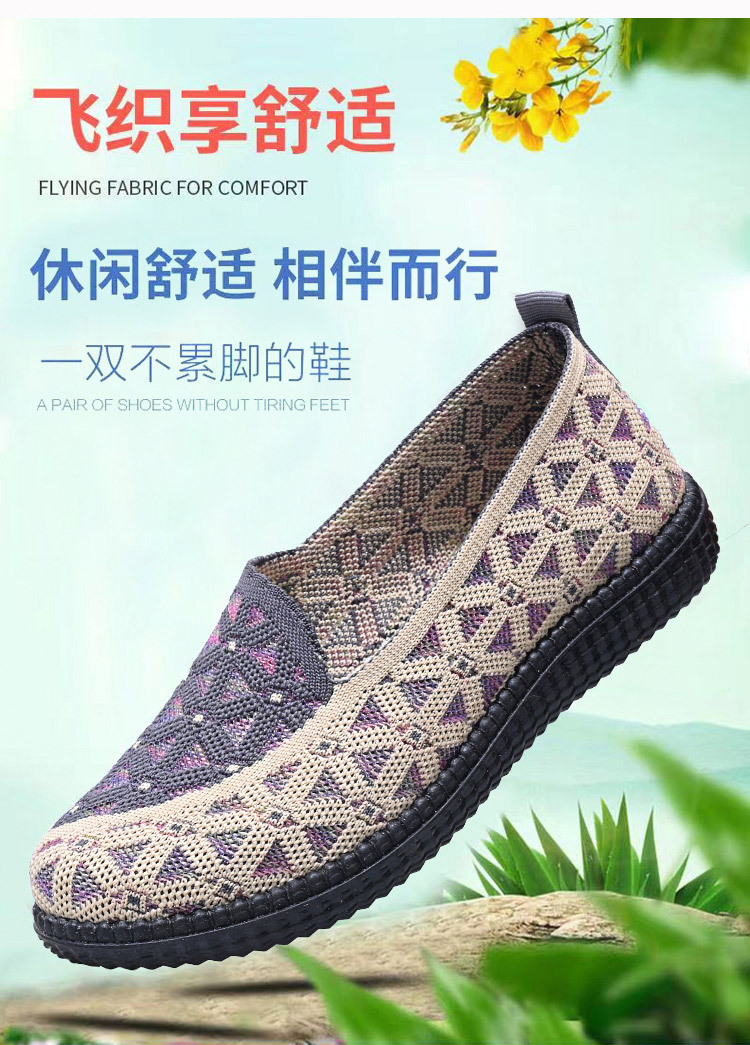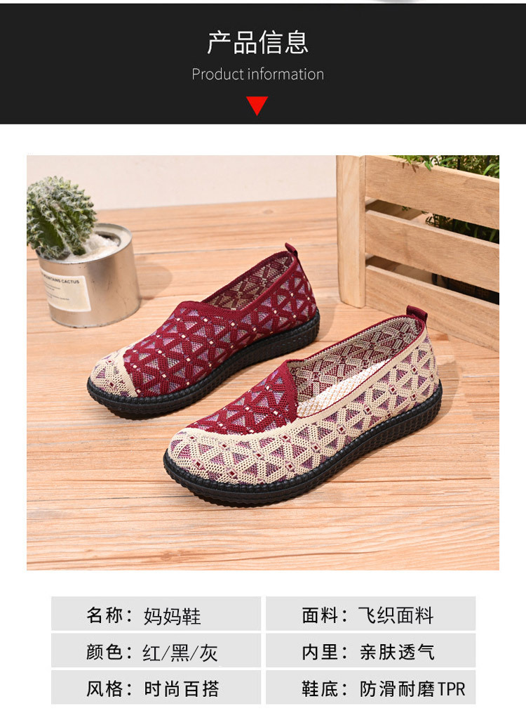 오래 된 베이징 천 신발 봄과 가을 둥근 발가락 얕은 입 슬립 온 신발 엄마 캐주얼 신발 중년 및 노인을위한 플랫 게으른 신발스토어 가기