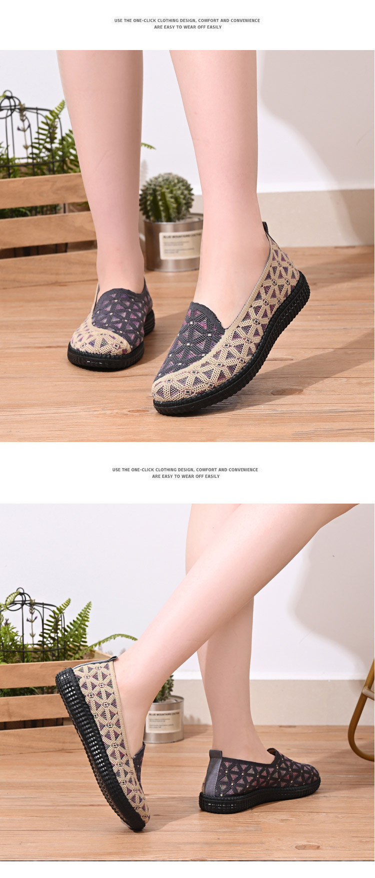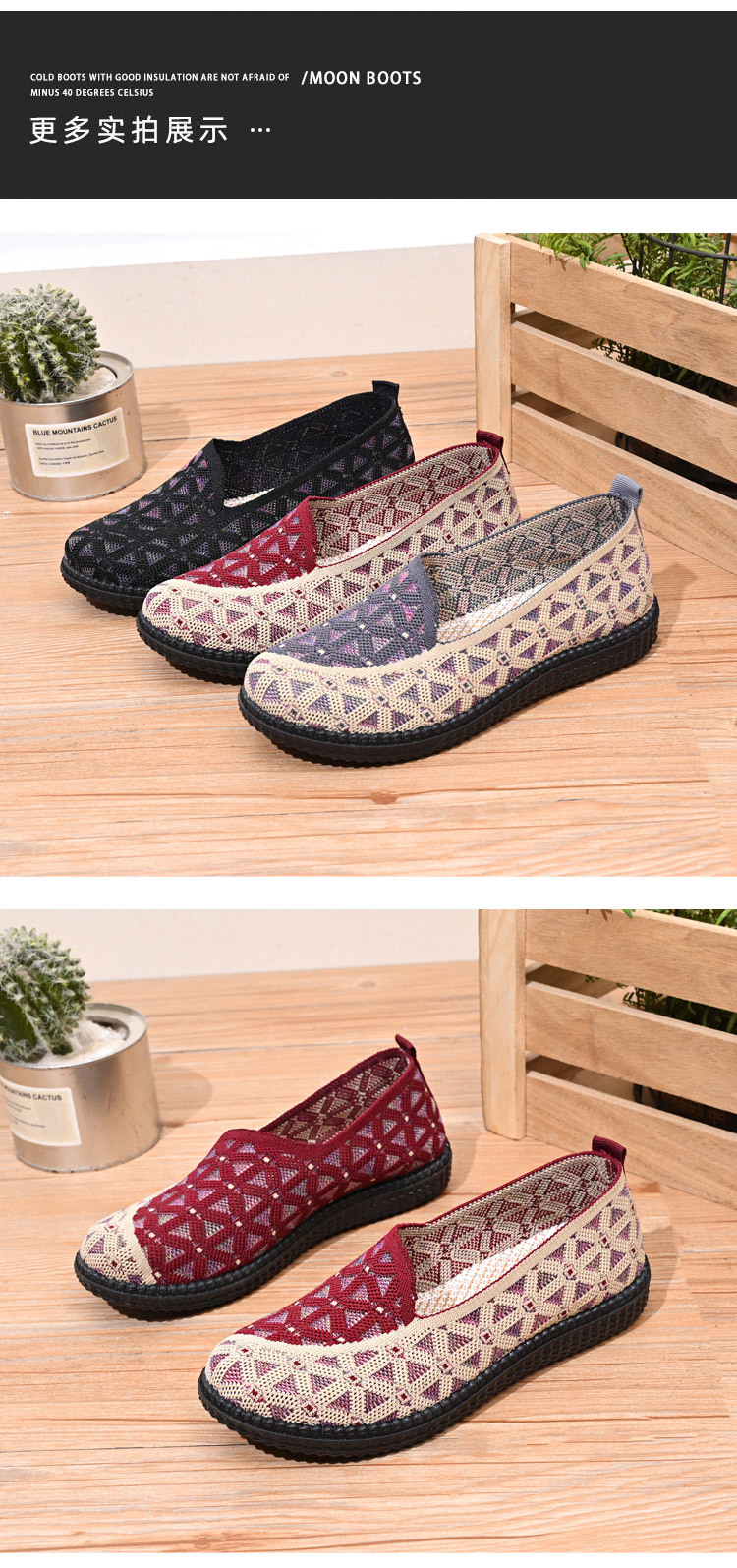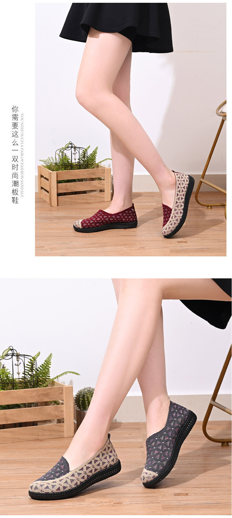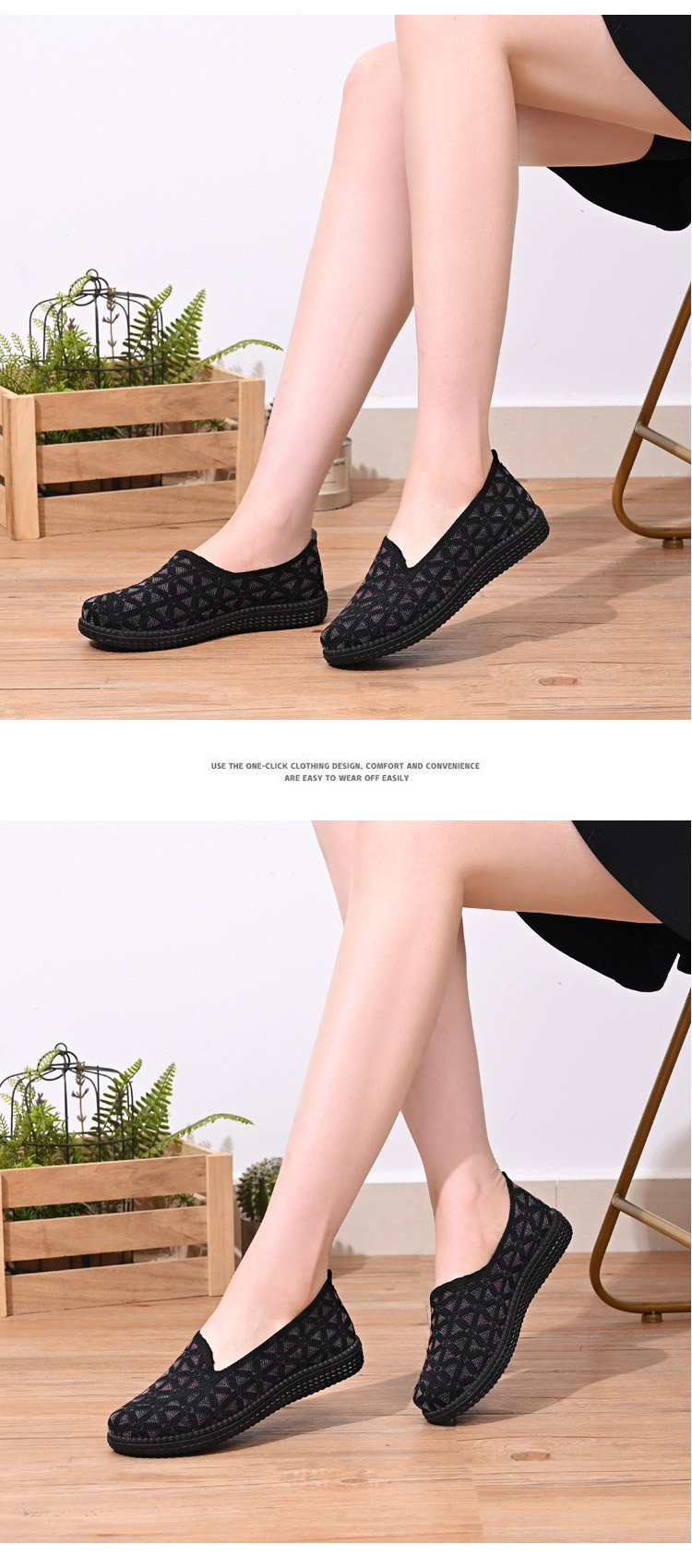 오래 된 베이징 천 신발 봄과 가을 둥근 발가락 얕은 입 슬립 온 신발 엄마 캐주얼 신발 중년 및 노인을위한 플랫 게으른 신발