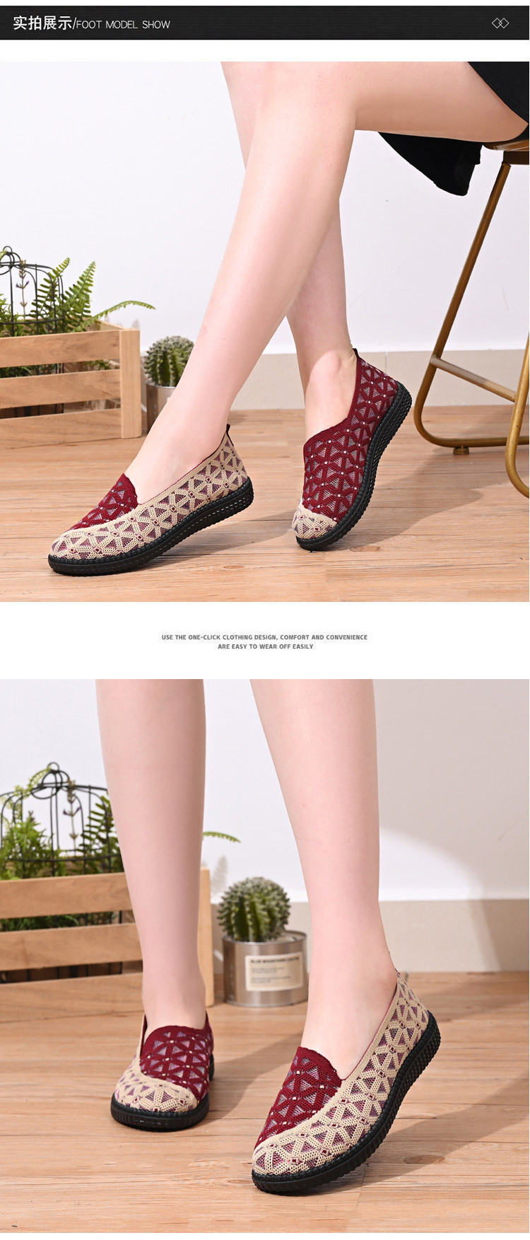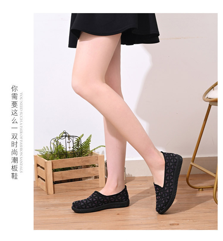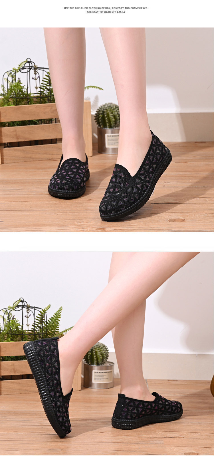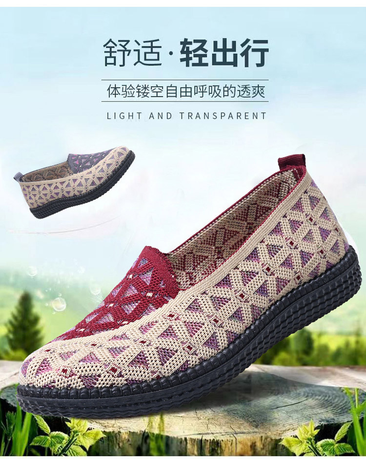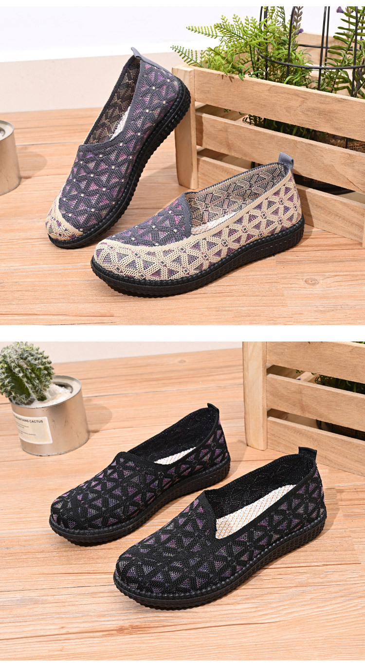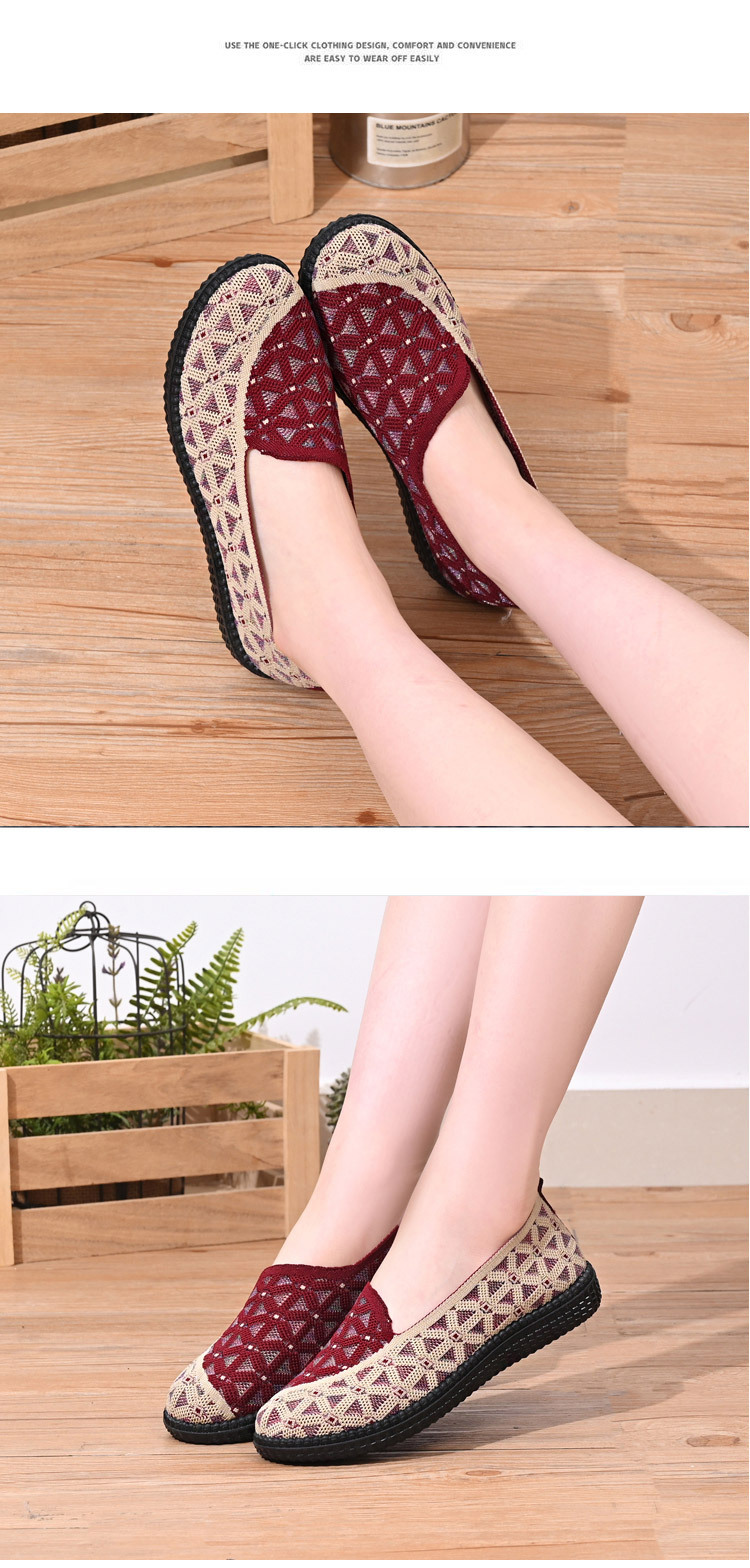 오래 된 베이징 천 신발 봄과 가을 둥근 발가락 얕은 입 슬립 온 신발 엄마 캐주얼 신발 중년 및 노인을위한 플랫 게으른 신발