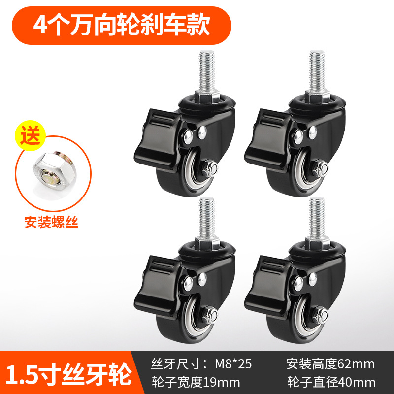 • (경량) 브레이크가 장착된 1.5inch M8 나사 휠, 4개