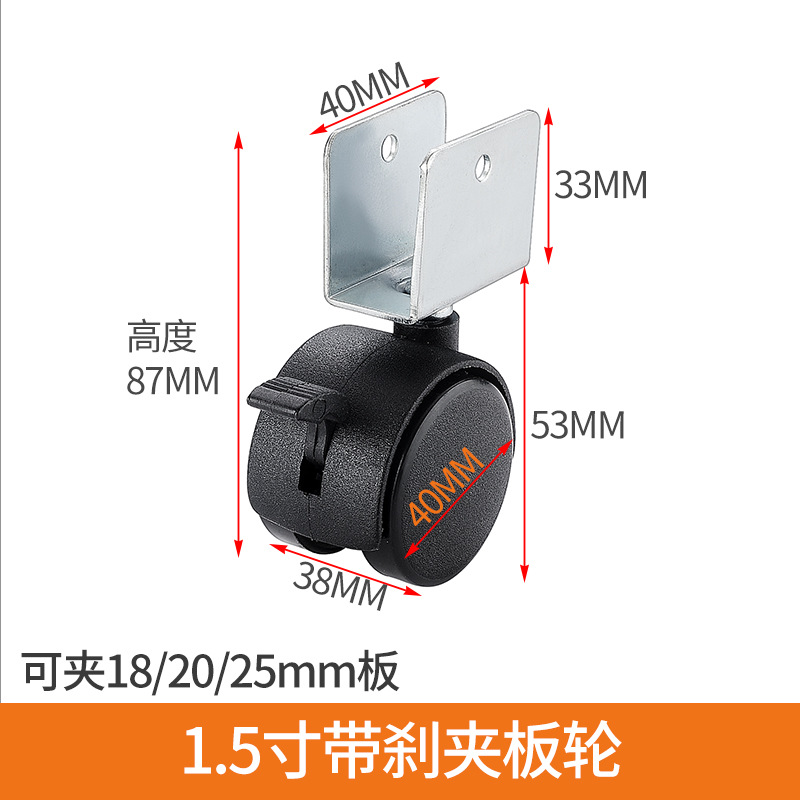 • (헤비 듀티) 브레이크가 장착된 1.5inch 범용 휠, 4개 팩
