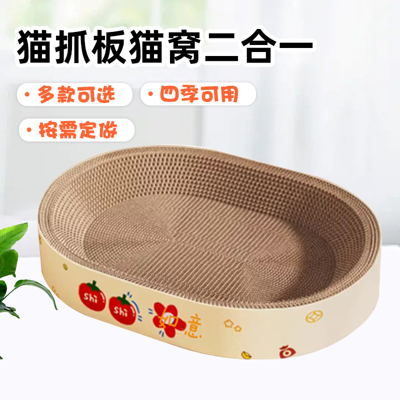 빅 맥 타원형 고양이 긁는 보드 수면 및 재생 통합 고양이 둥지 대형 공간 착용 방지 스크래치 사계절 애완 동물 고양이 용품