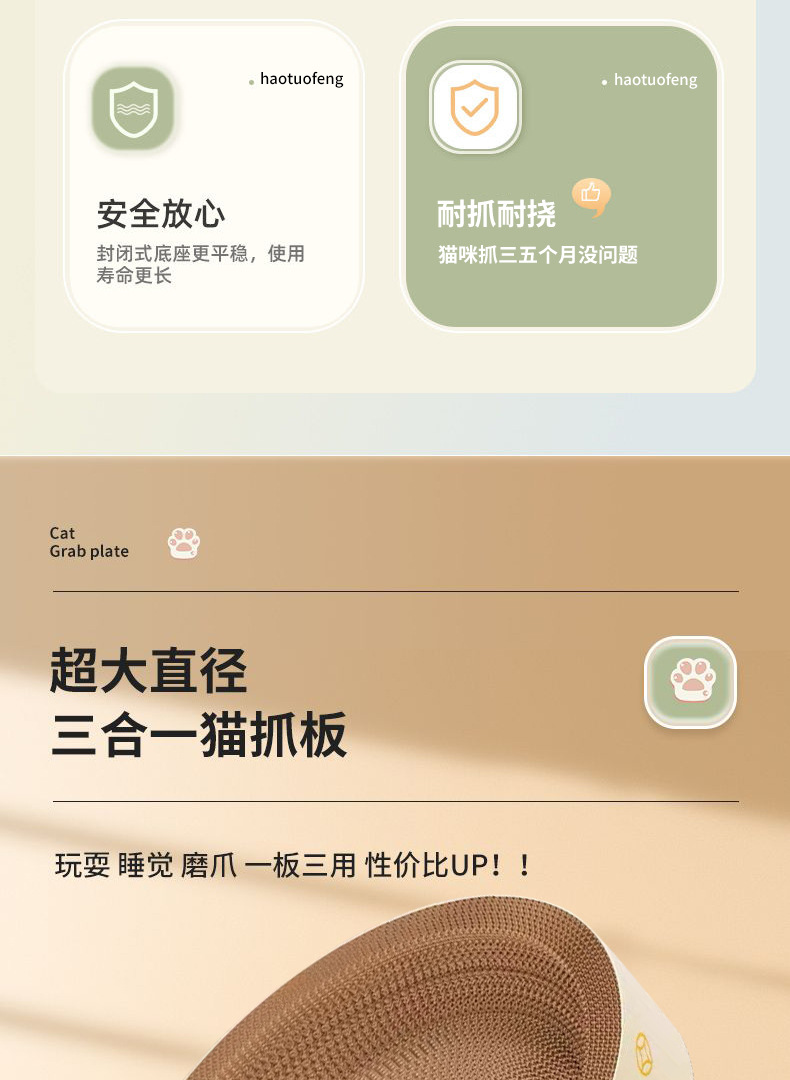 빅 맥 타원형 고양이 긁는 보드 수면 및 재생 통합 고양이 둥지 대형 공간 착용 방지 스크래치 사계절 애완 동물 고양이 용품스토어 가기