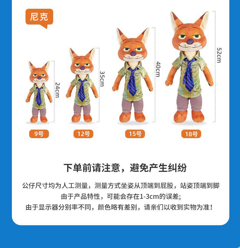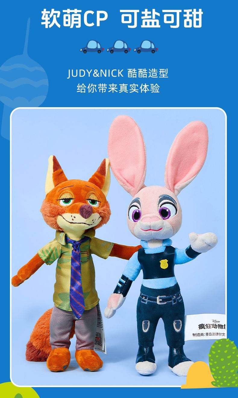 오티에 디즈니 주토피아 봉제 인형 닉 주디 인형