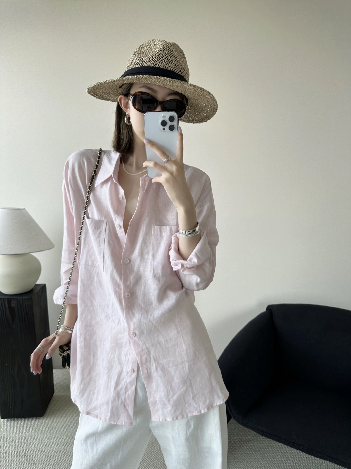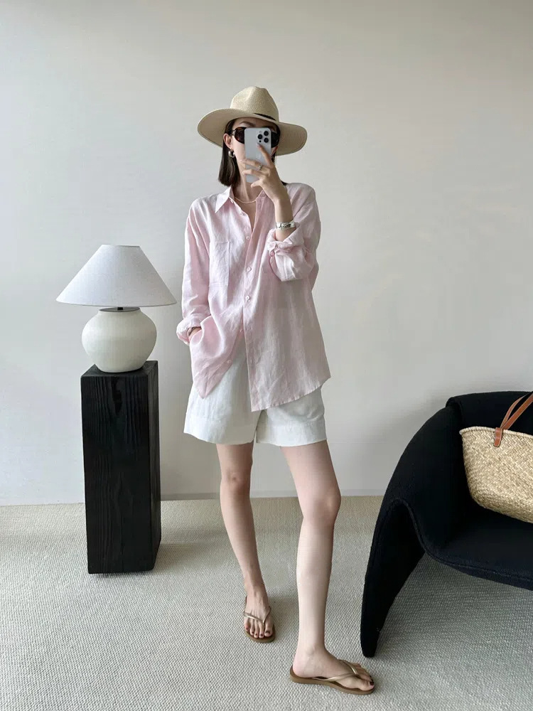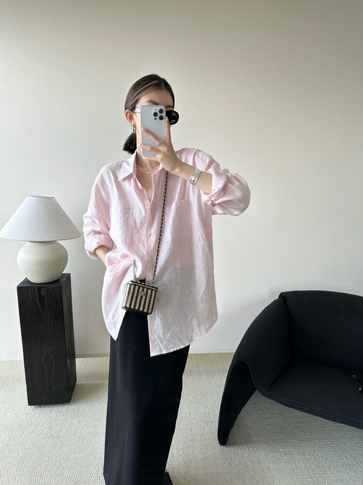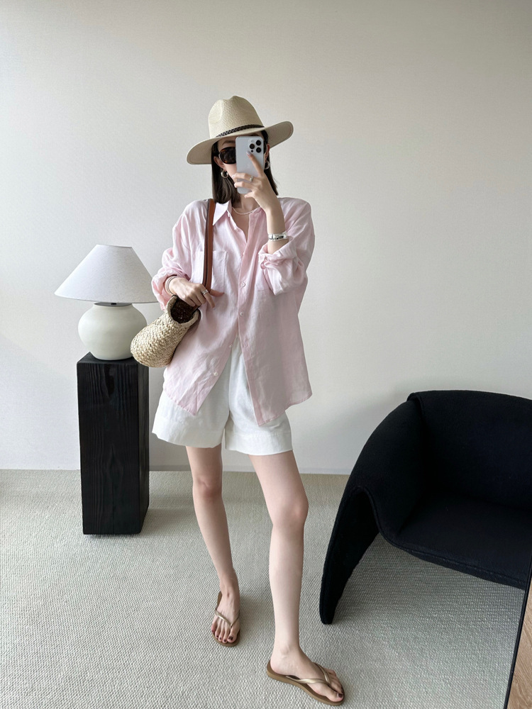 고급 린넨 자외선 차단제 긴 소매 셔츠 여성 최고 여름 2024 새로운면과 린넨 얇은 통기성 셔츠스토어 가기