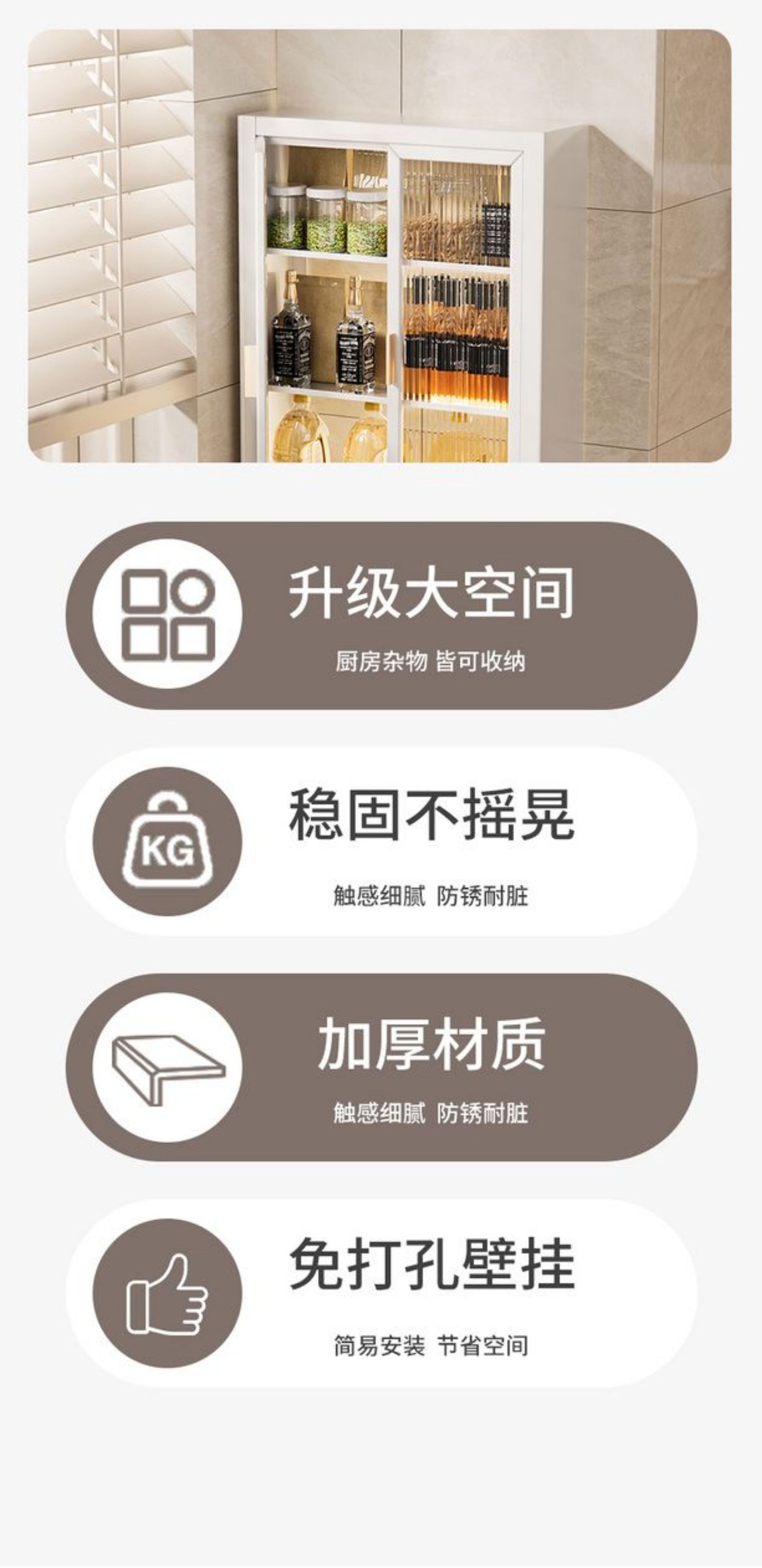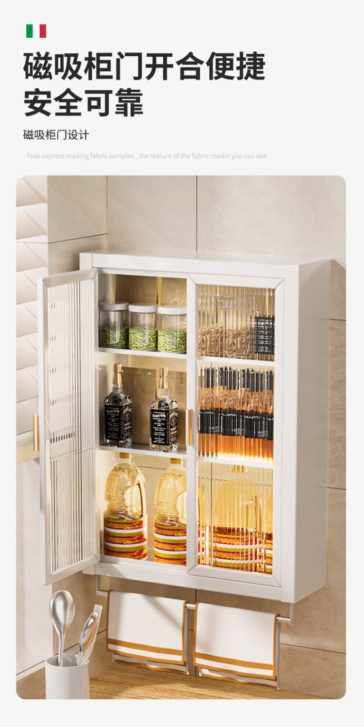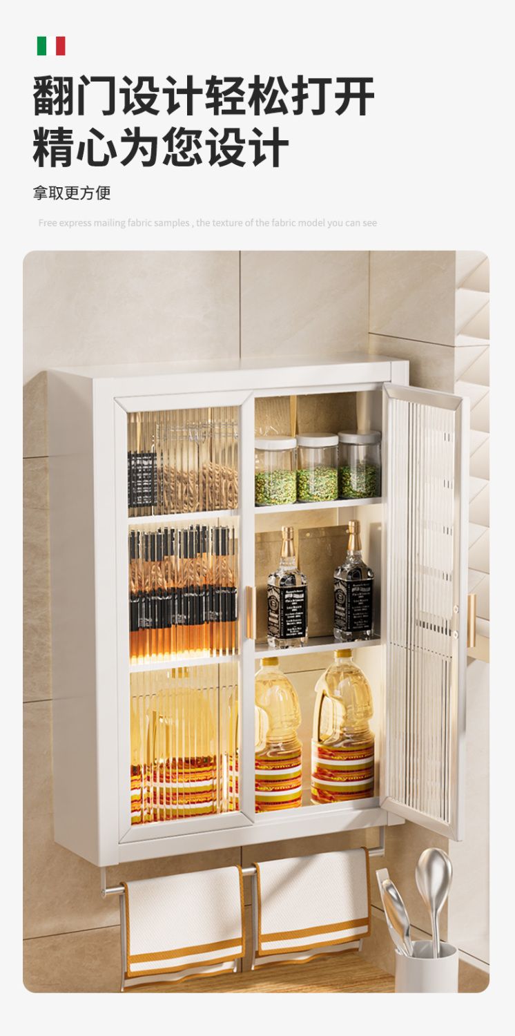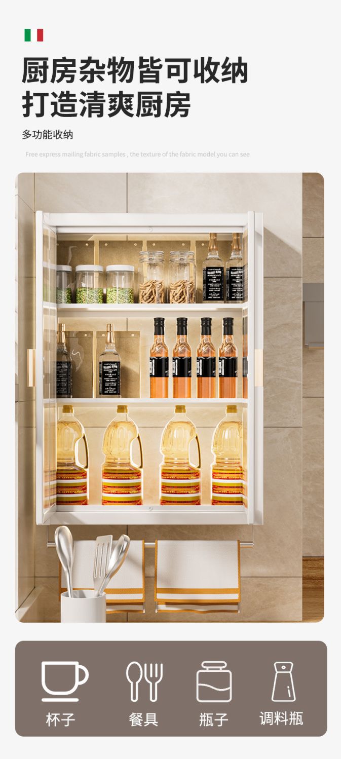 주방 펀치 프리 스토리지 랙 벽 장착 플라스크 스토리지 도어 방진 새 스토리지가있는 다기능 벽 캐비닛