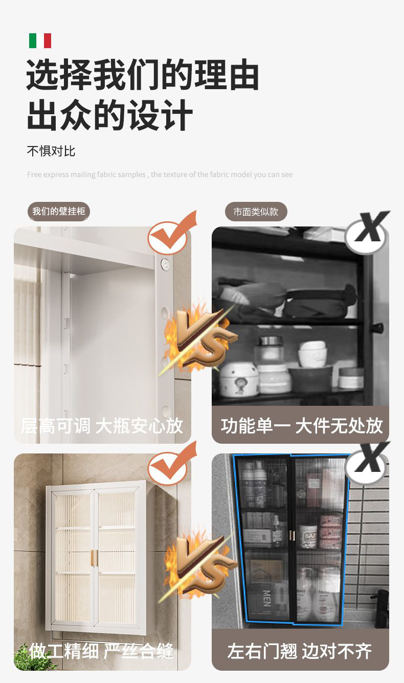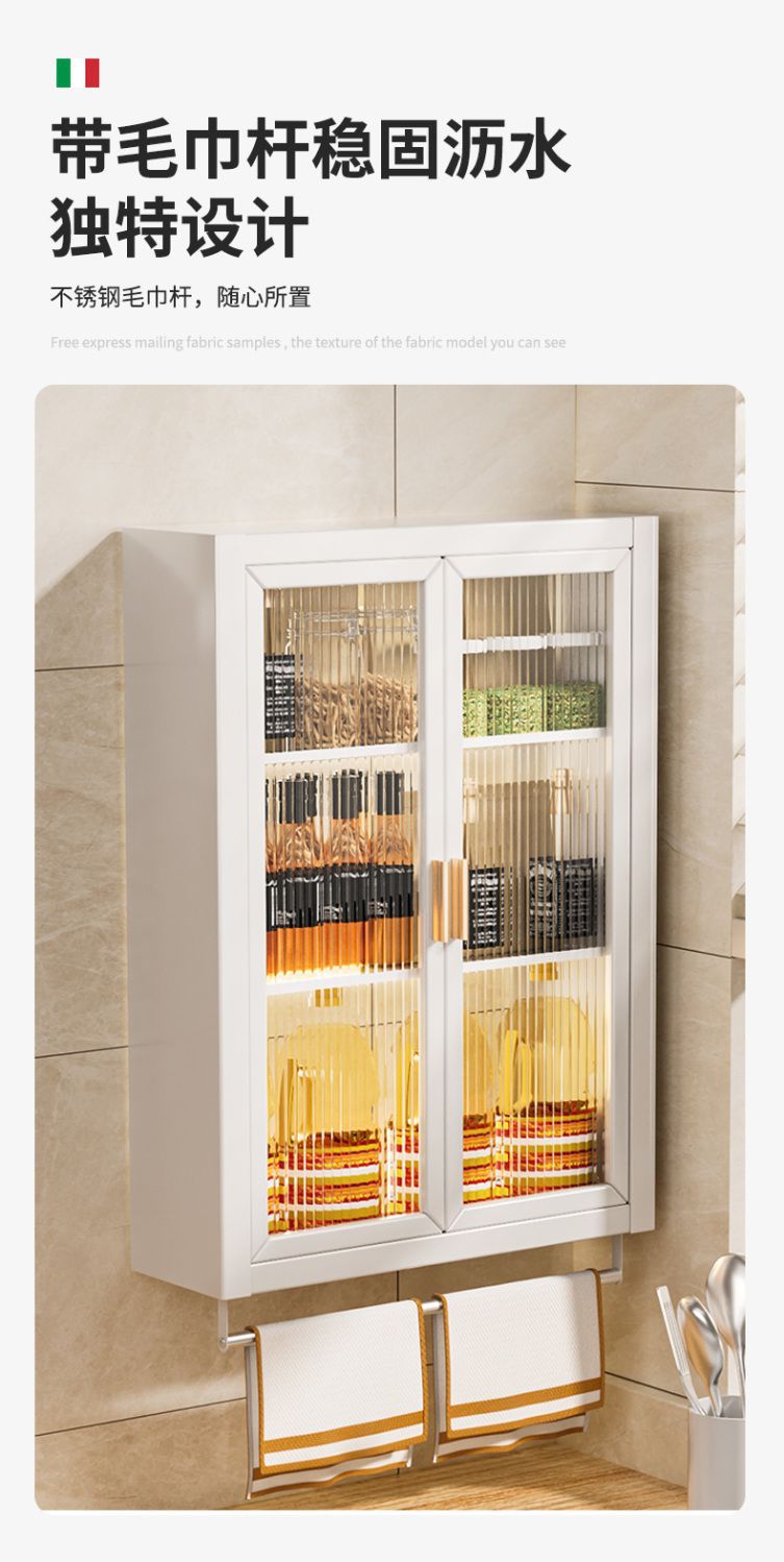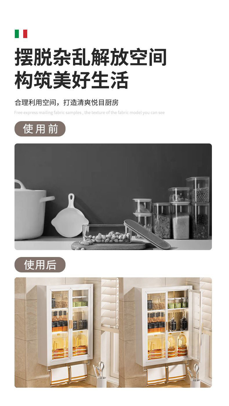 주방 펀치 프리 스토리지 랙 벽 장착 플라스크 스토리지 도어 방진 새 스토리지가있는 다기능 벽 캐비닛
