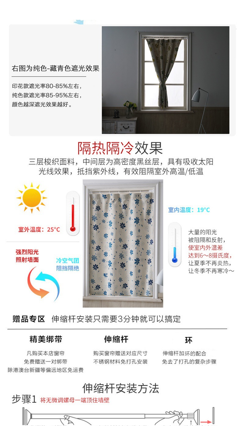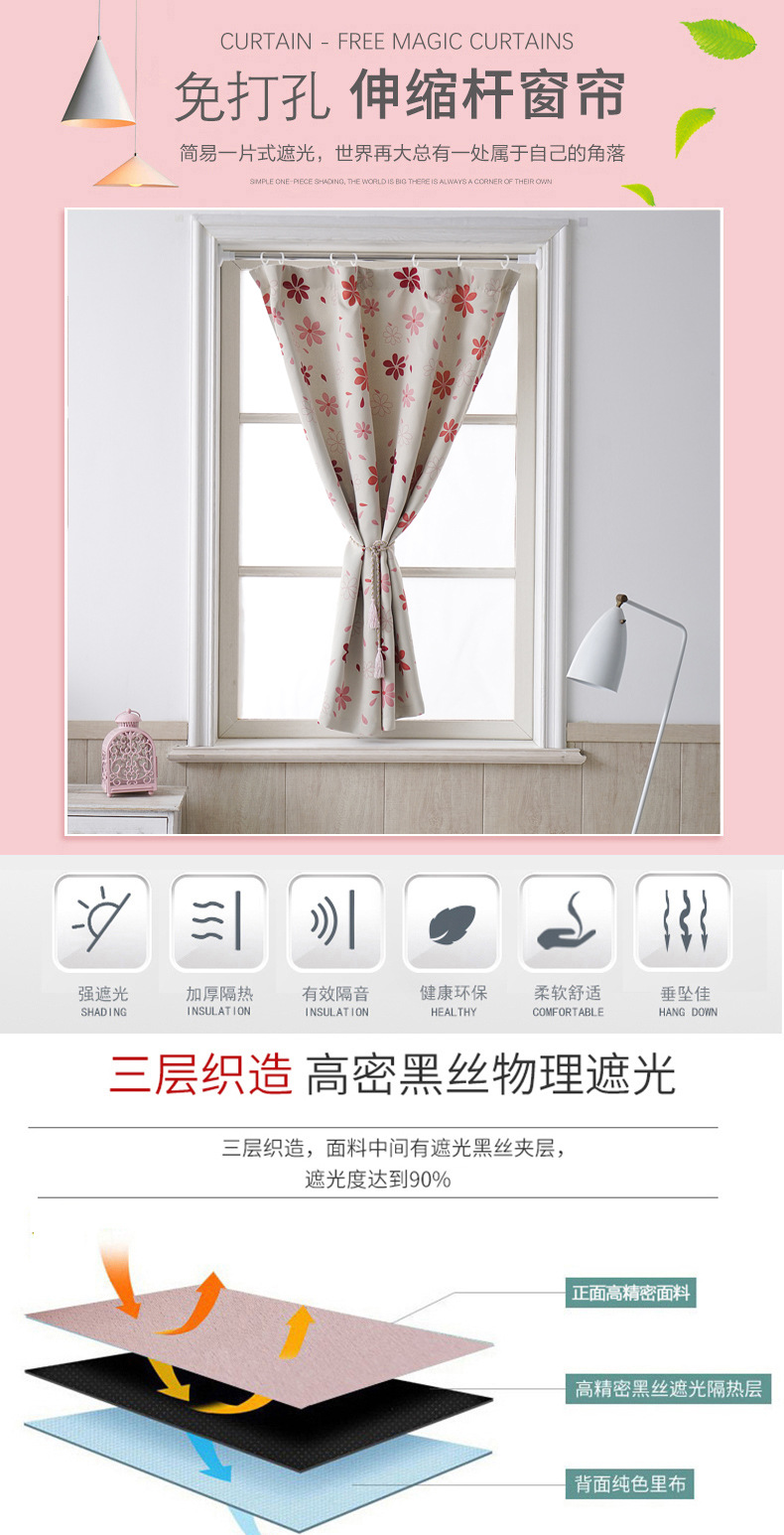 심플한 커튼, 완제품, 암막커튼, 펀치없는 설치, 따뜻한 임대주택, 기숙사, 작은 침실, 심플한 신제품스토어 가기