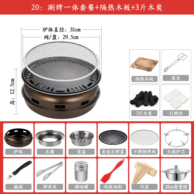 • ☆★20: 샤브샤브와 구이를 위한 완전한 세트 + 단열 목재 보드 + 1.5kg 숯☆★