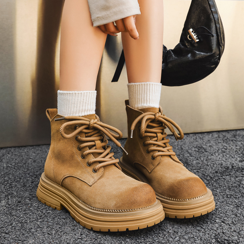 여성을위한 가을 및 겨울 새로운 레트로 쇼트 부츠 여성을위한 두꺼운 밑창 마틴 부츠 남성용 올 매치 소형 트렌디 대황 부츠스토어 가기