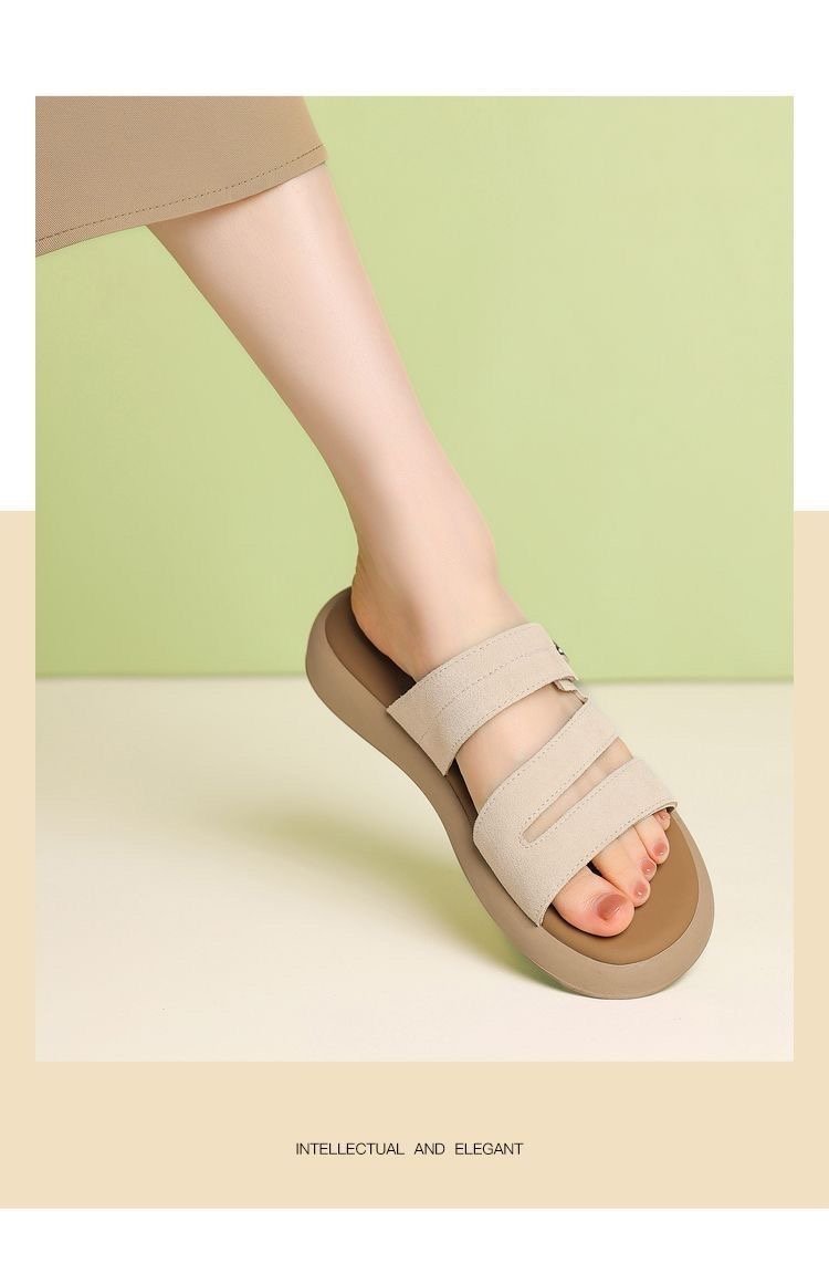 두꺼운 밑창 샌들과 슬리퍼 여성 2024 년 여름 패션 플랫 바닥 슬리퍼 임산부 캐주얼 미끄럼 방지 스커트 비치 슈즈
