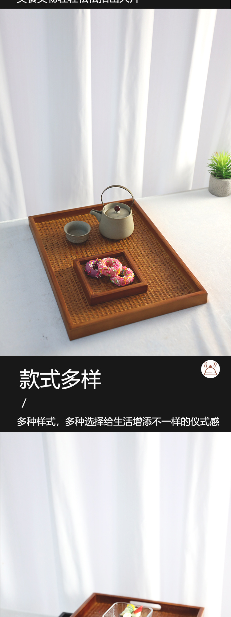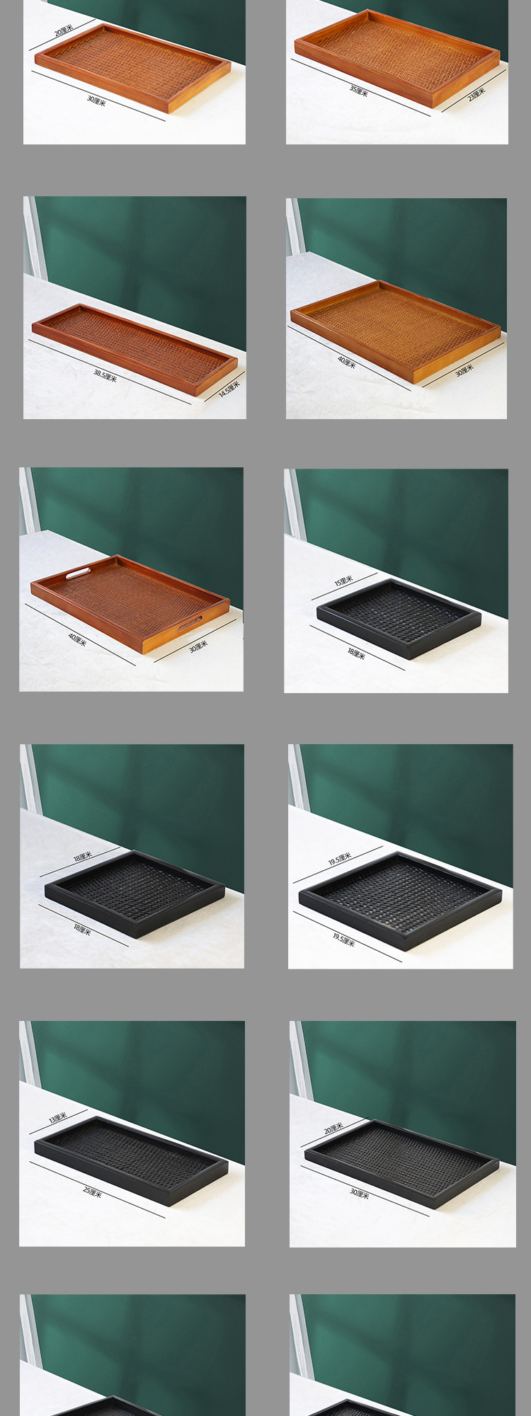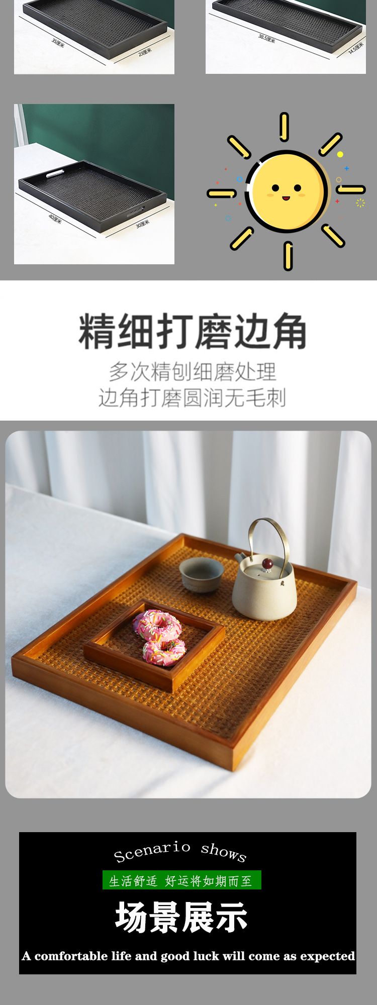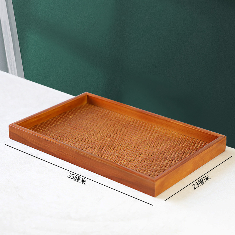 등나무 나무 직사각형 쟁반 가정용 단단한 나무 차 세트 차 쟁반 거실 간식 쟁반 다기능 사용 새로운 나무 제품스토어 가기