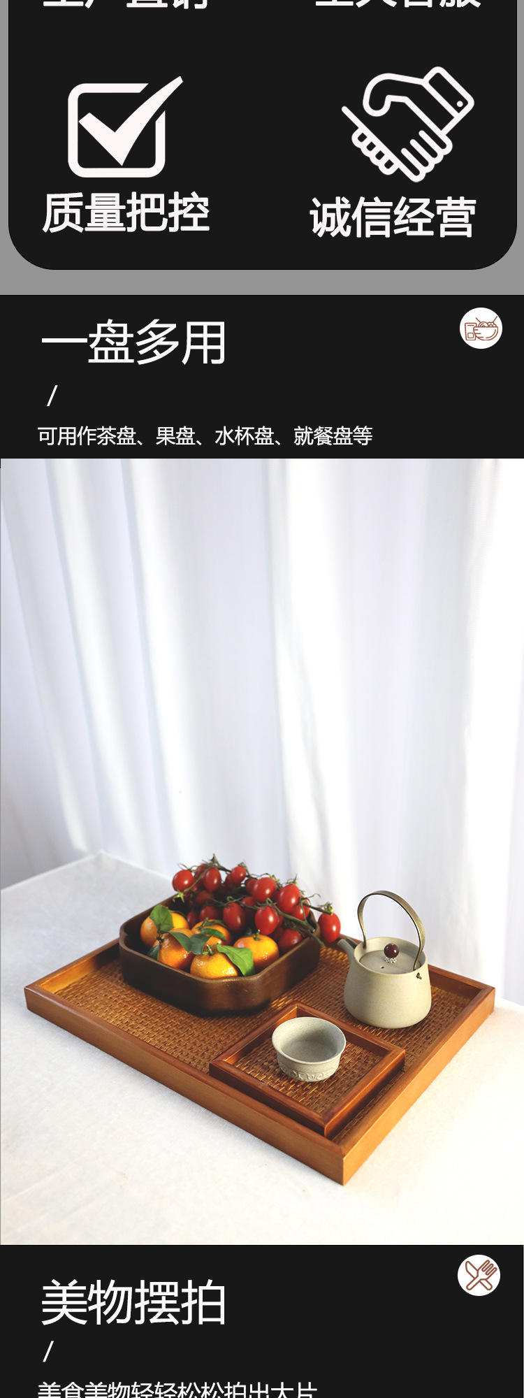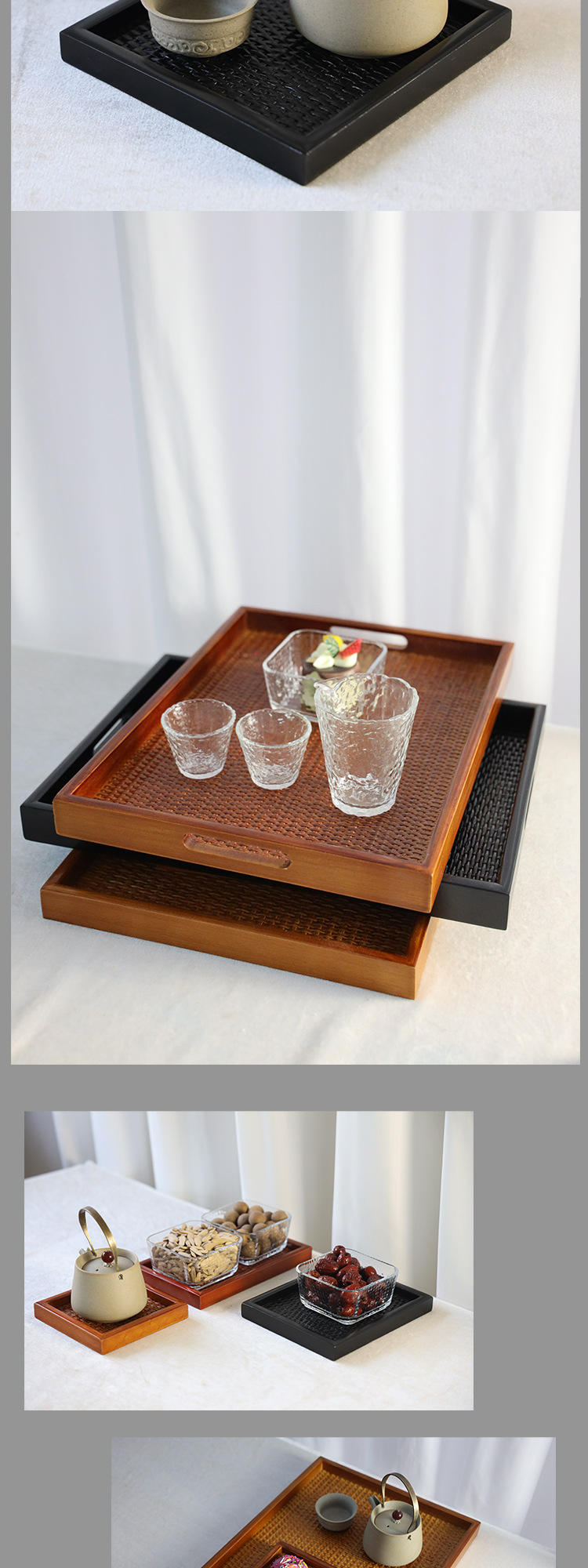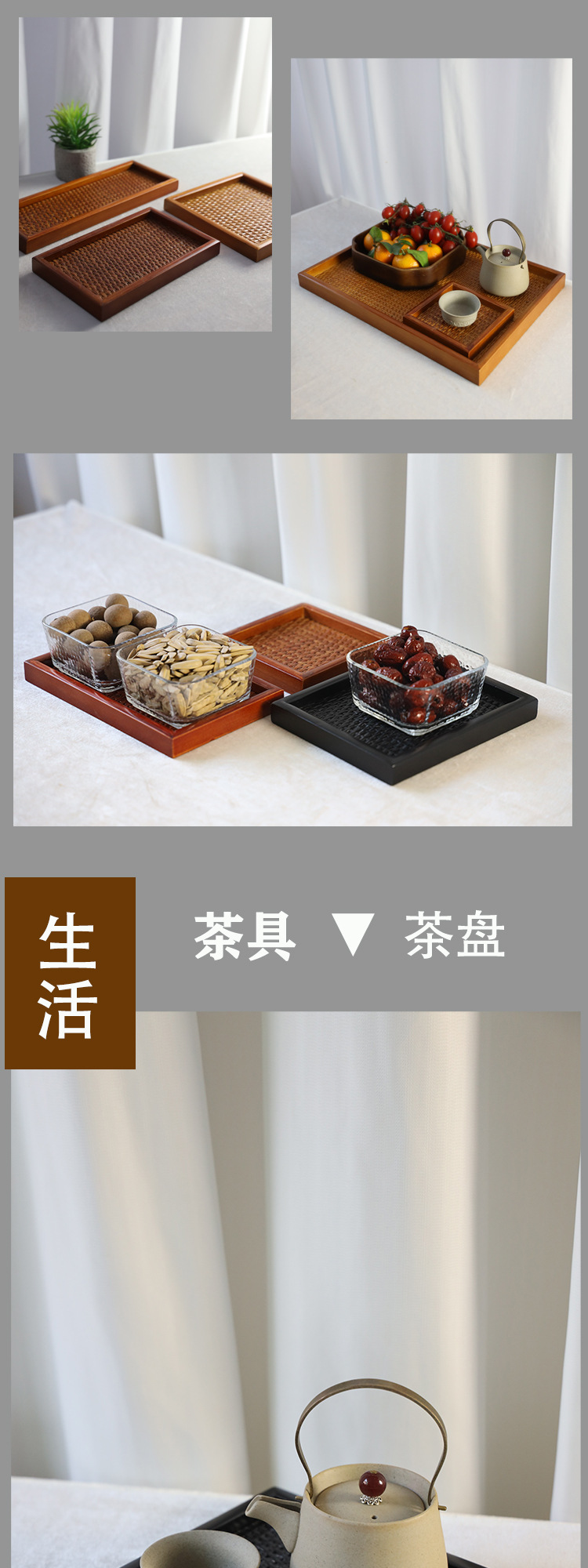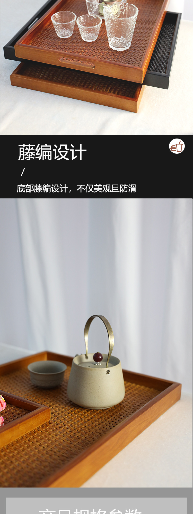 등나무 나무 직사각형 쟁반 가정용 단단한 나무 차 세트 차 쟁반 거실 간식 쟁반 다기능 사용 새로운 나무 제품