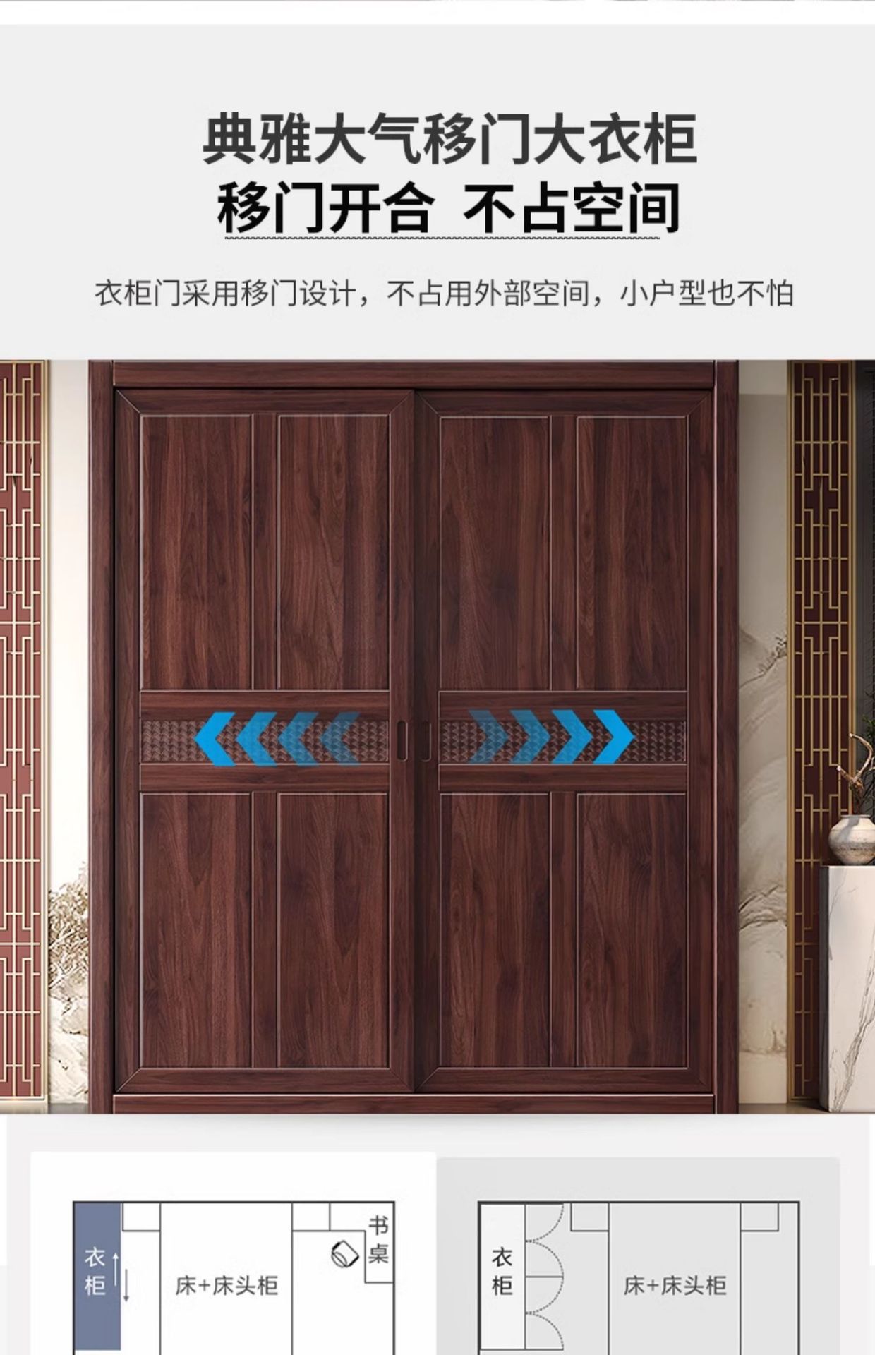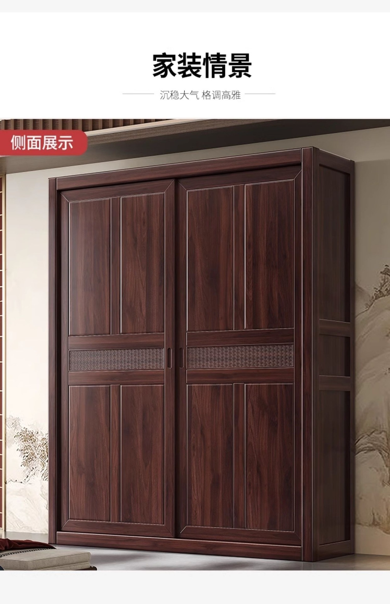 모든 단단한 나무 새로운 중국 스타일 에보니 나무 미닫이 문 옷장 침실 2 문 가구 교수형 옷 옷장 보관 캐비닛스토어 가기