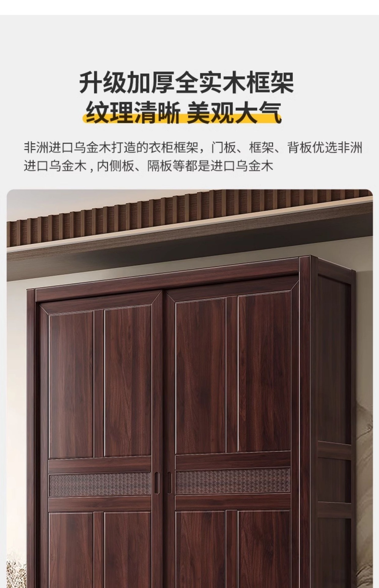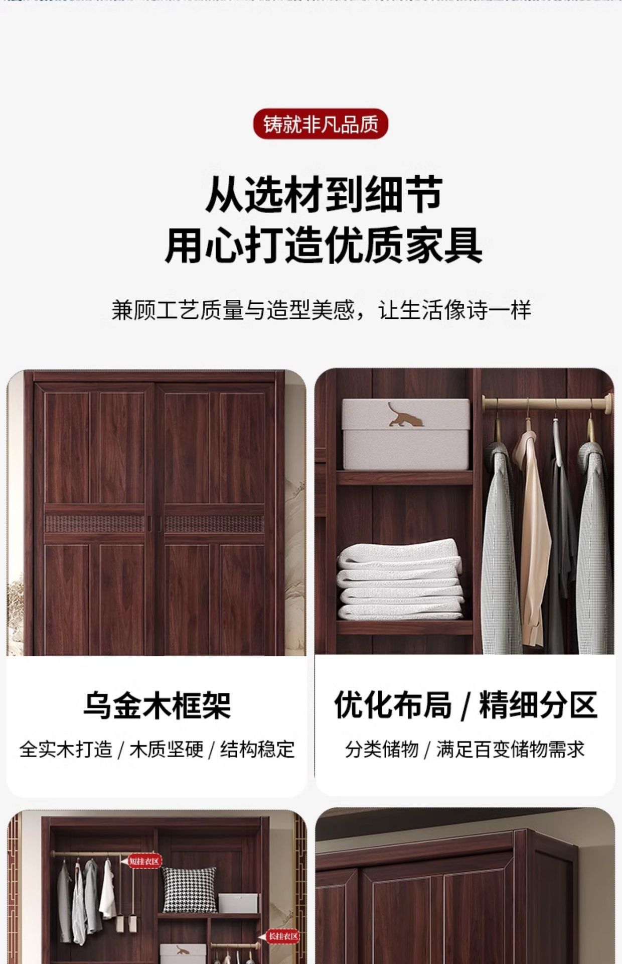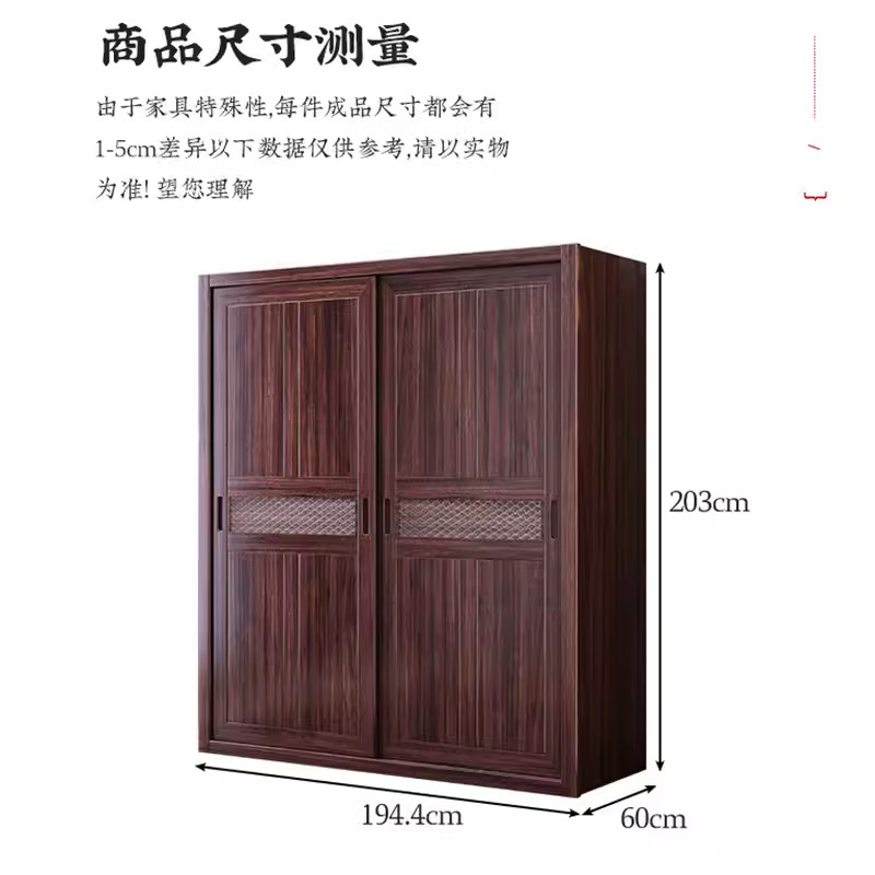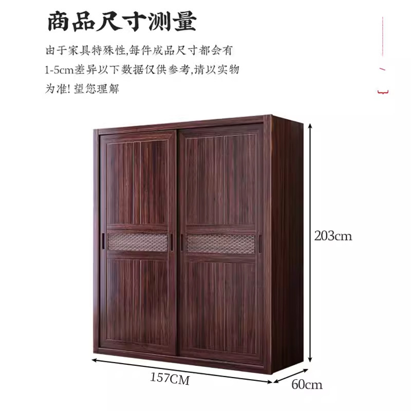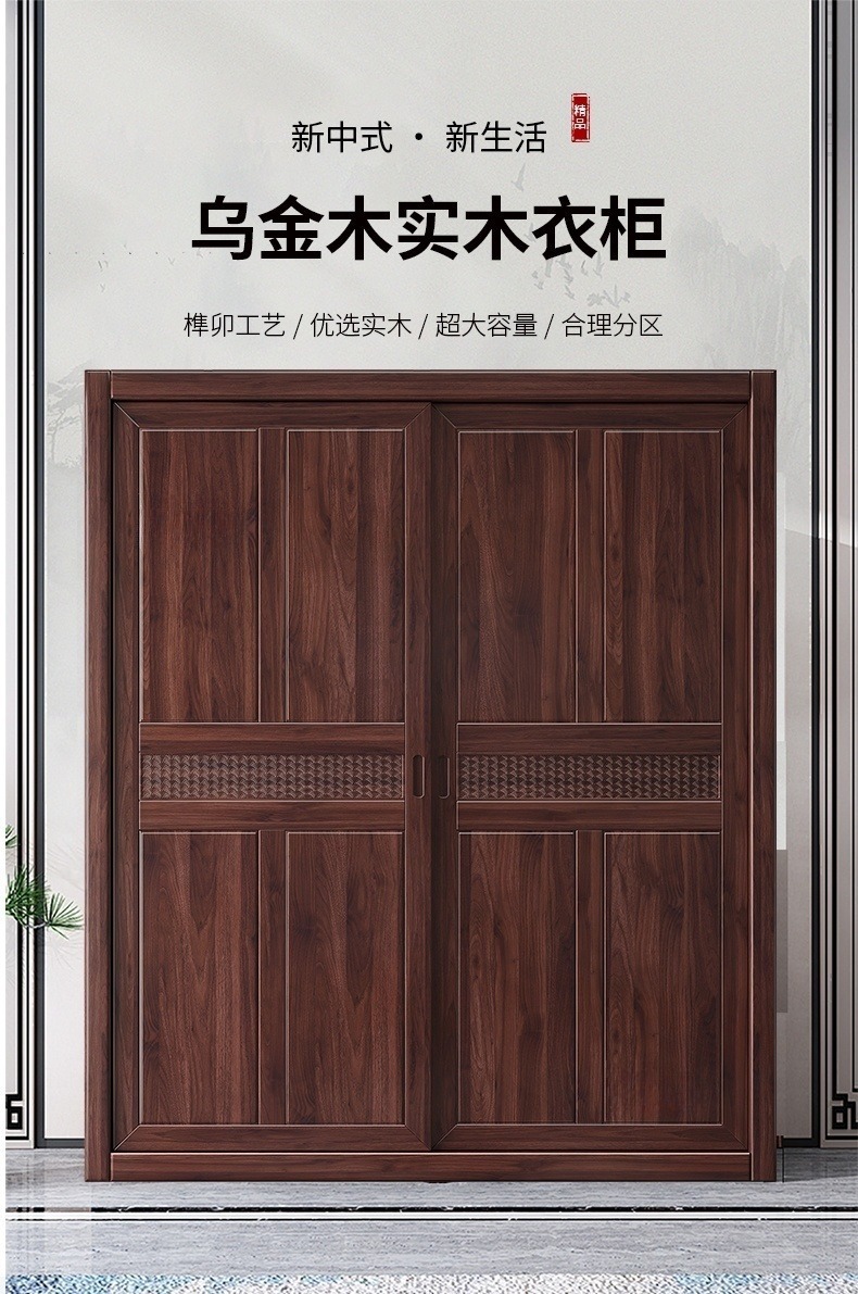 모든 단단한 나무 새로운 중국 스타일 에보니 나무 미닫이 문 옷장 침실 2 문 가구 교수형 옷 옷장 보관 캐비닛