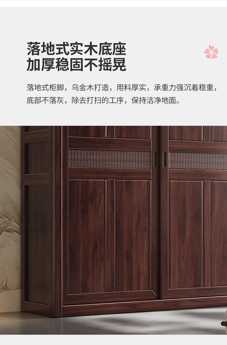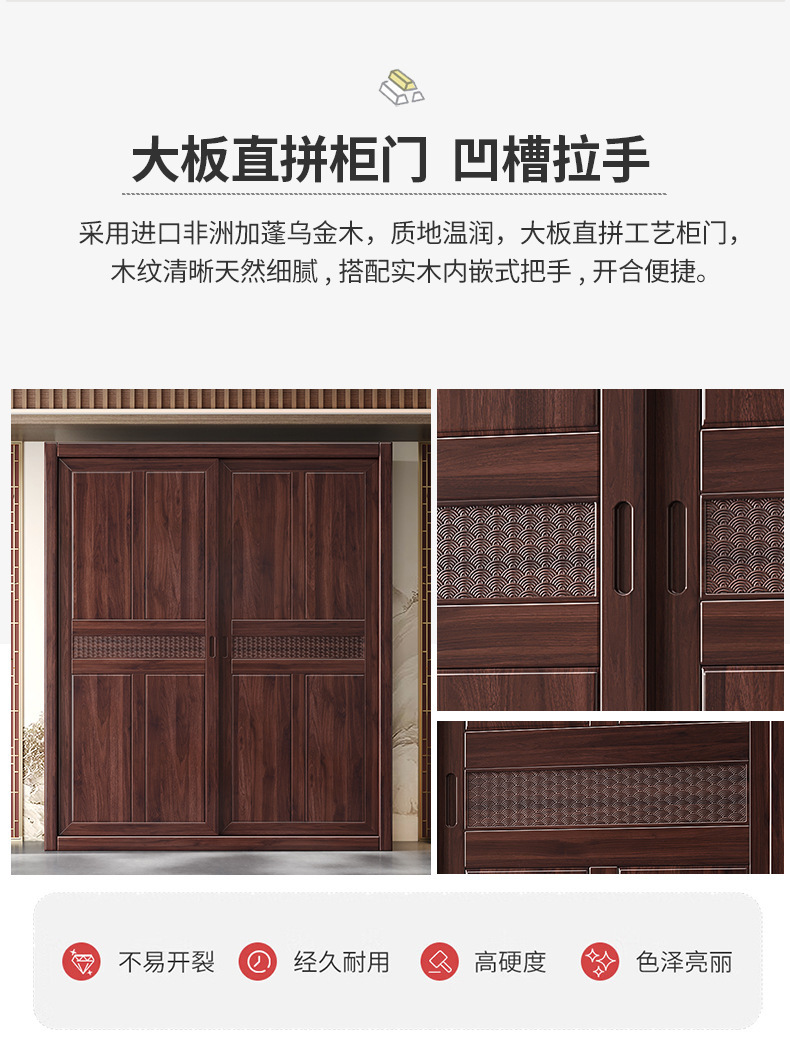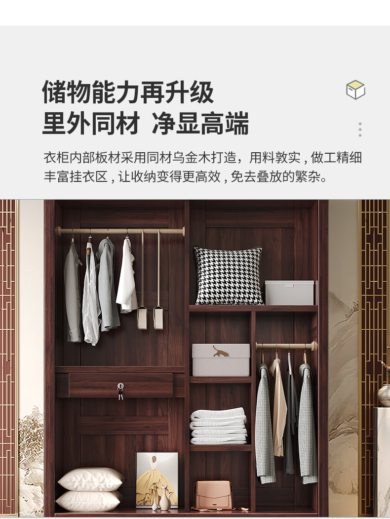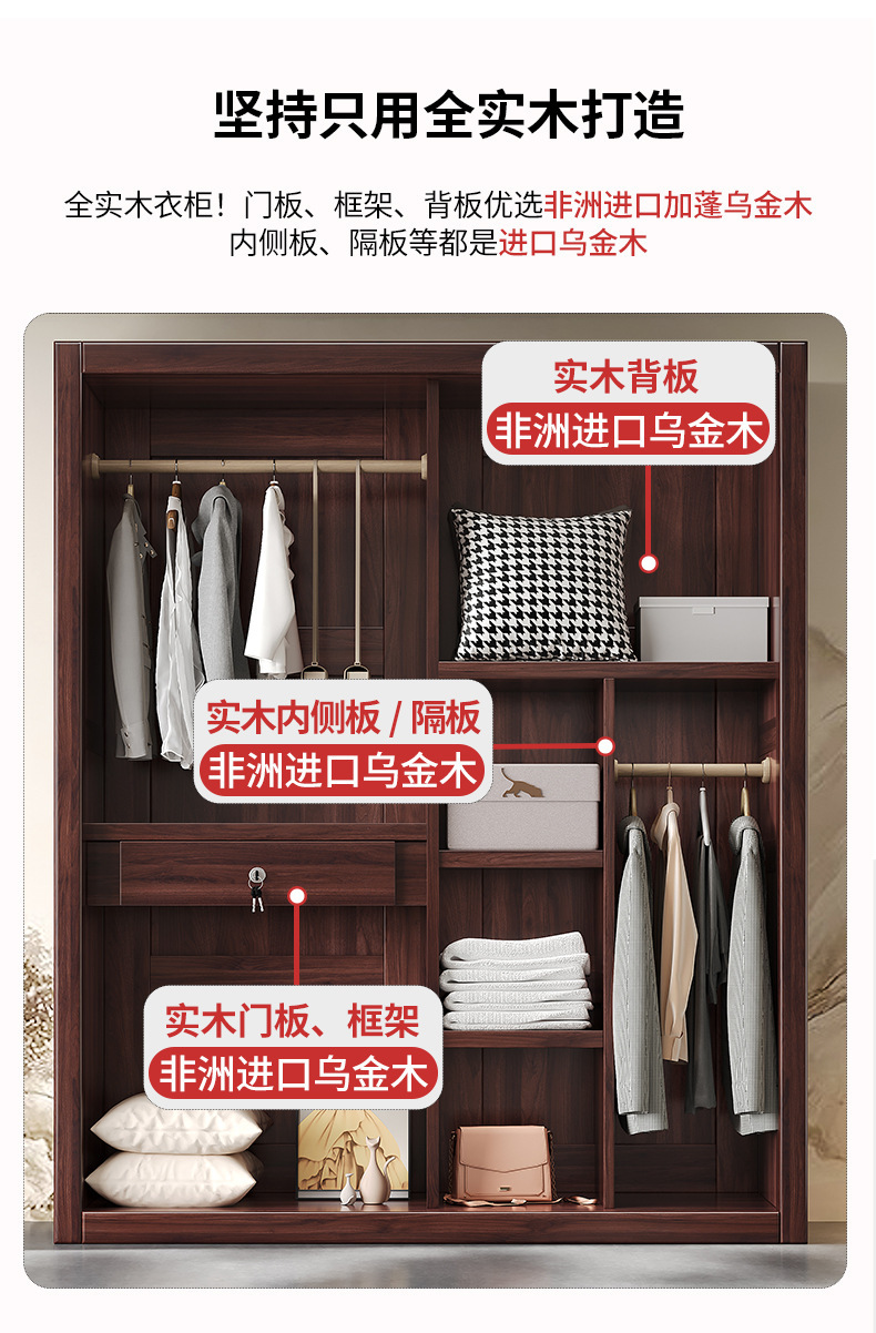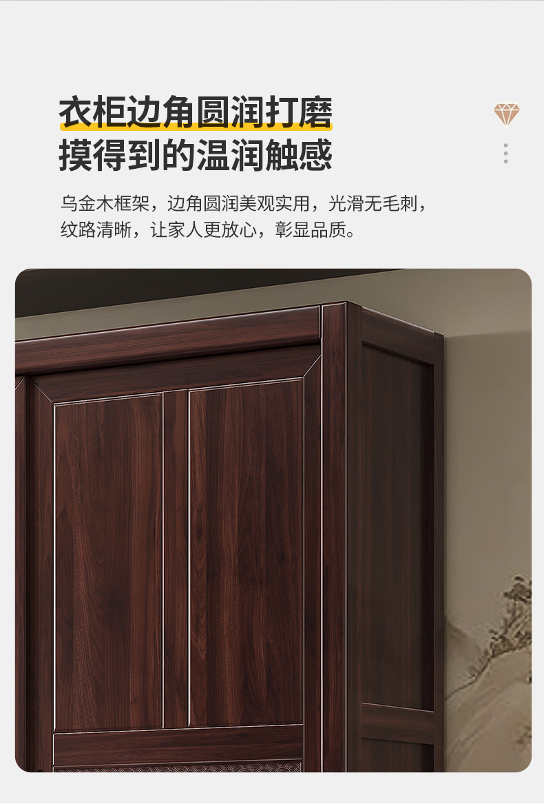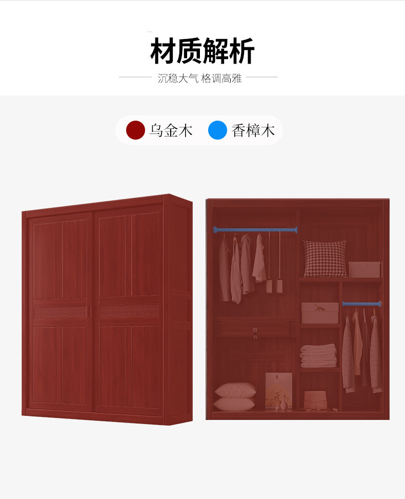 모든 단단한 나무 새로운 중국 스타일 에보니 나무 미닫이 문 옷장 침실 2 문 가구 교수형 옷 옷장 보관 캐비닛