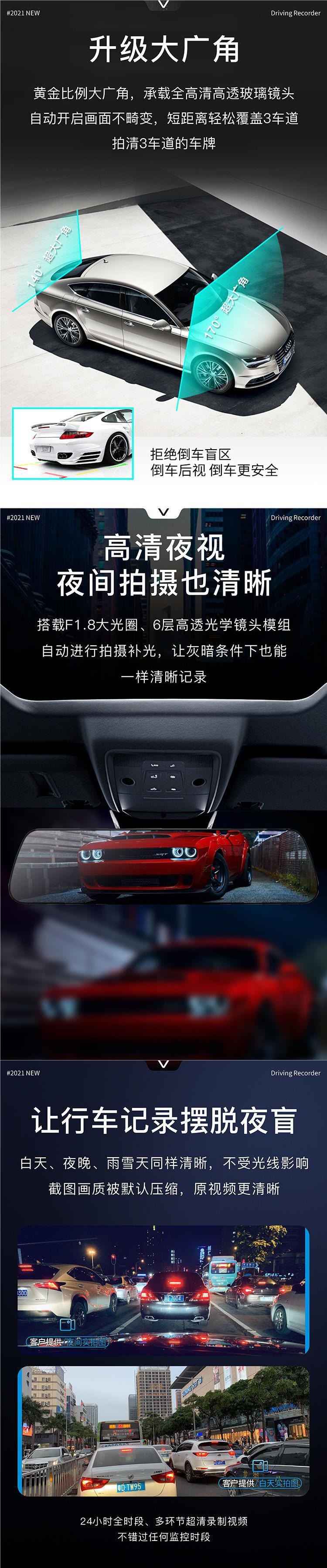 운전 레코더 고화질 360 도 파노라마 자동차 전면 및 후면 이중 녹화 반전 이미지 전자 개 탐색 모니터링