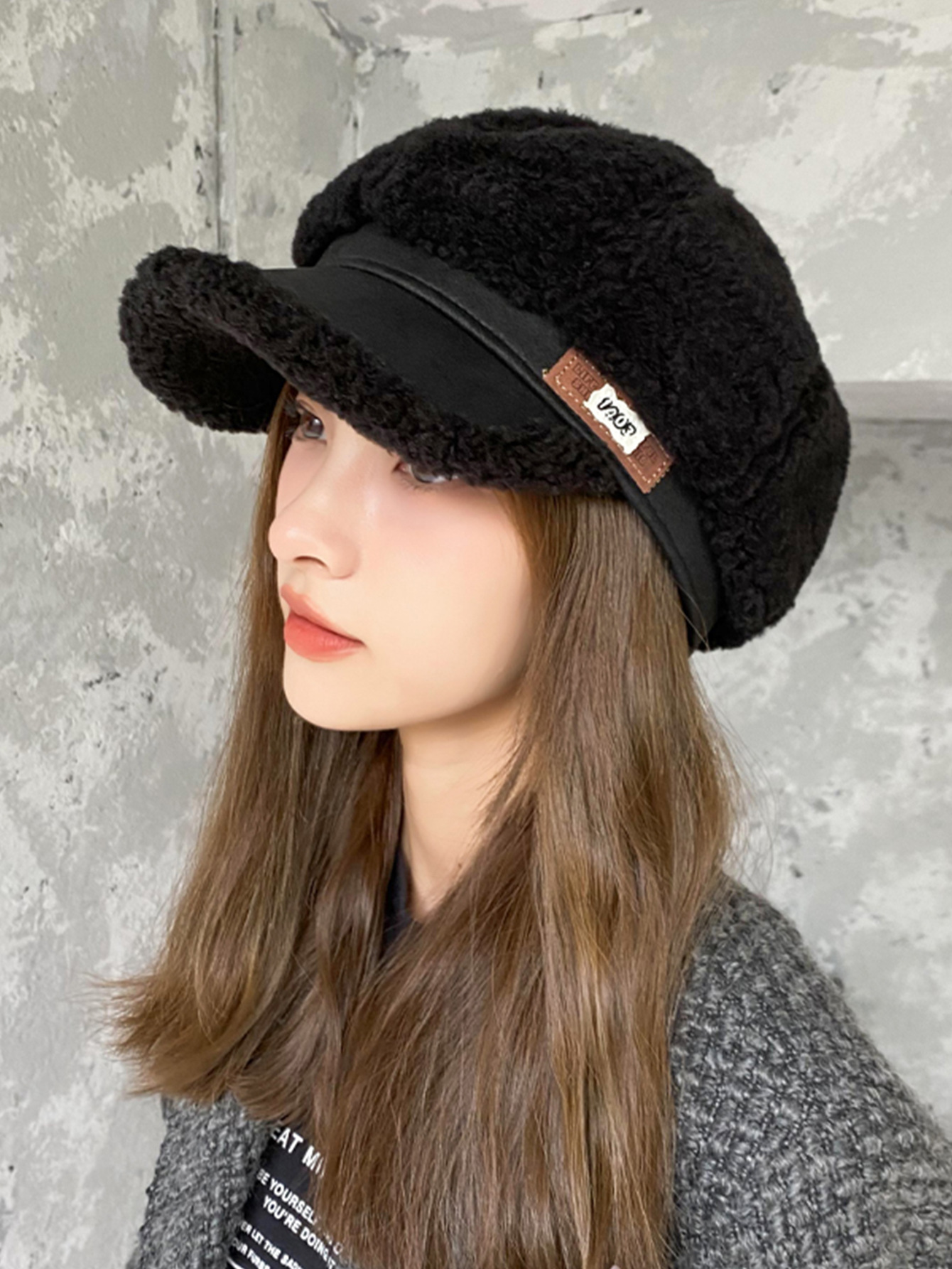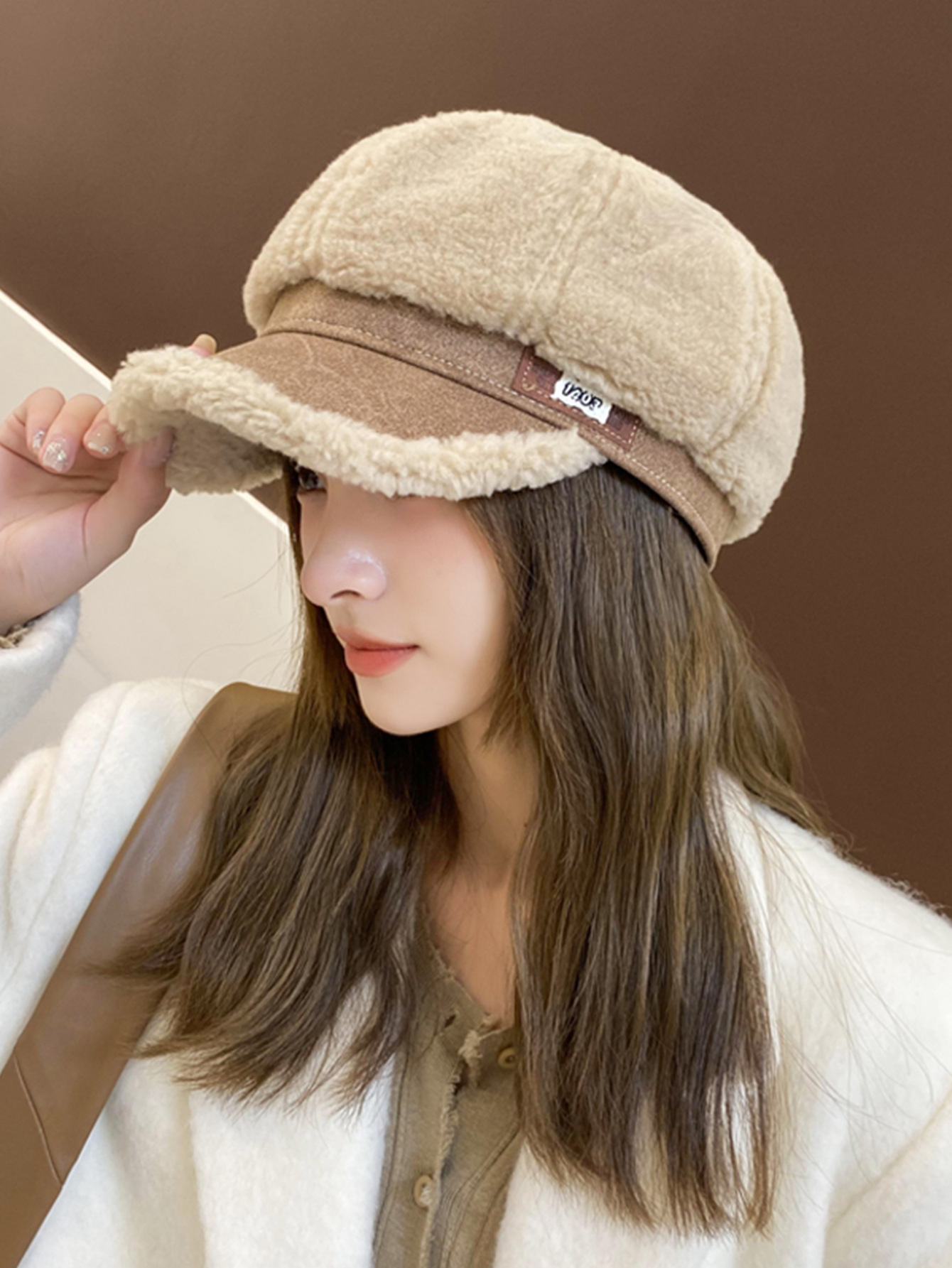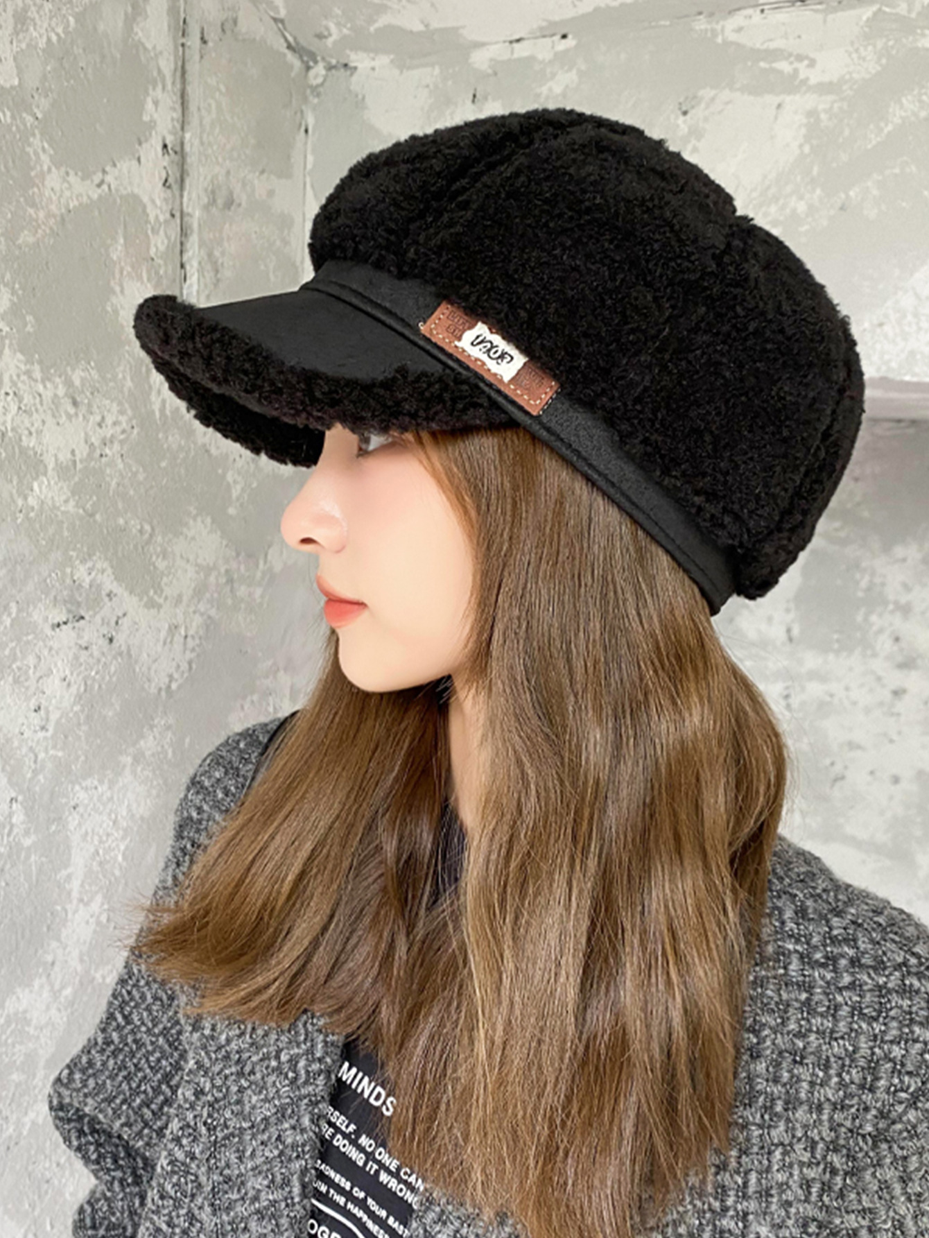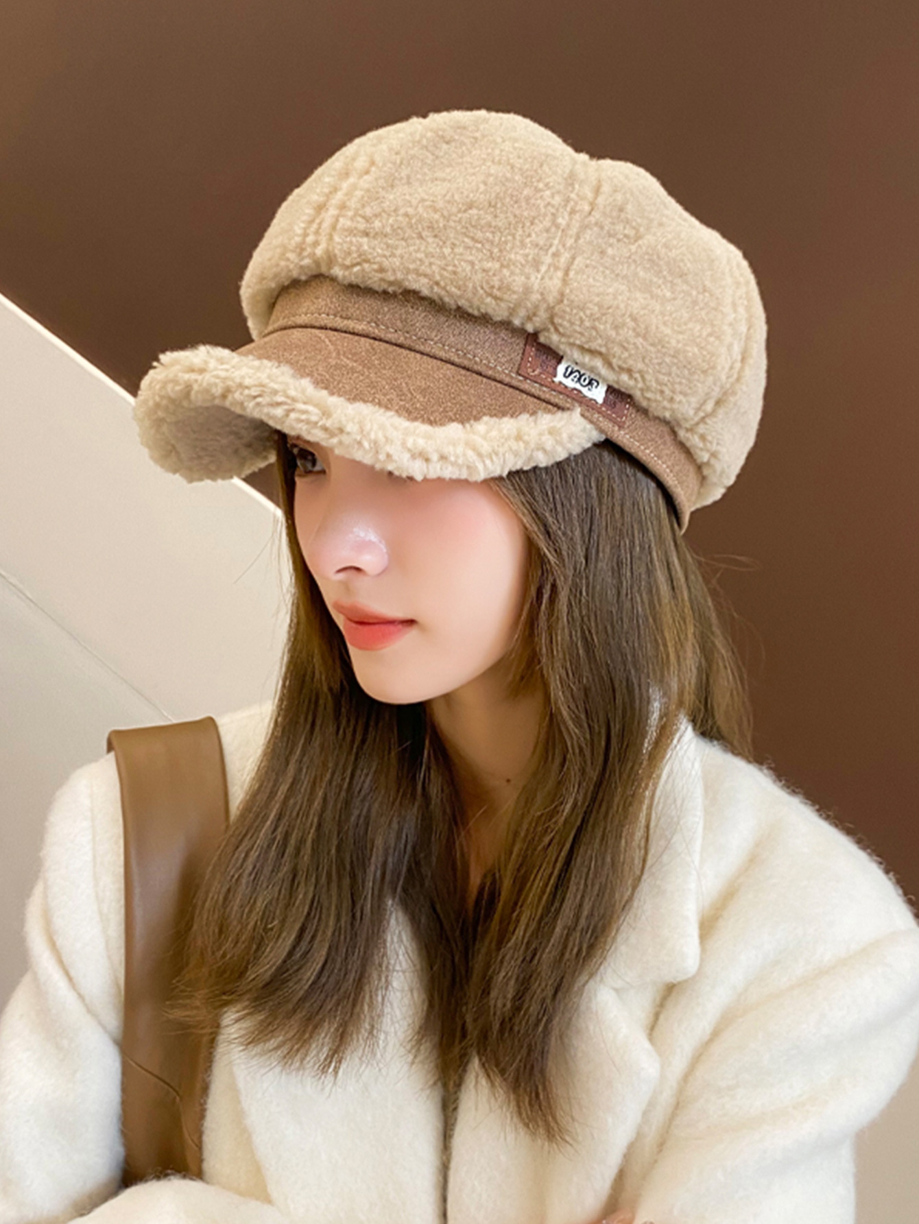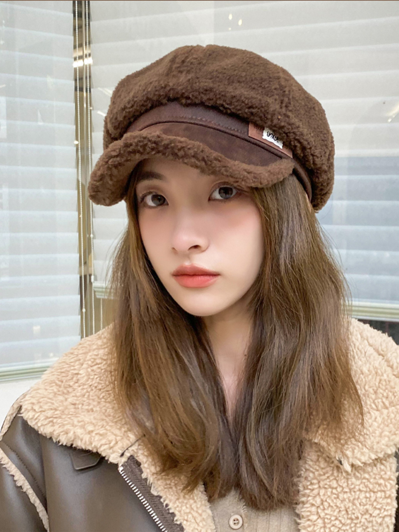 한국 스타일 가을 겨울 모방 양고기 양모 모자 여성 기모 두꺼운 팔각형 모자 겨울 따뜻한 모자 캐주얼 뉴스 보이 모자스토어 가기