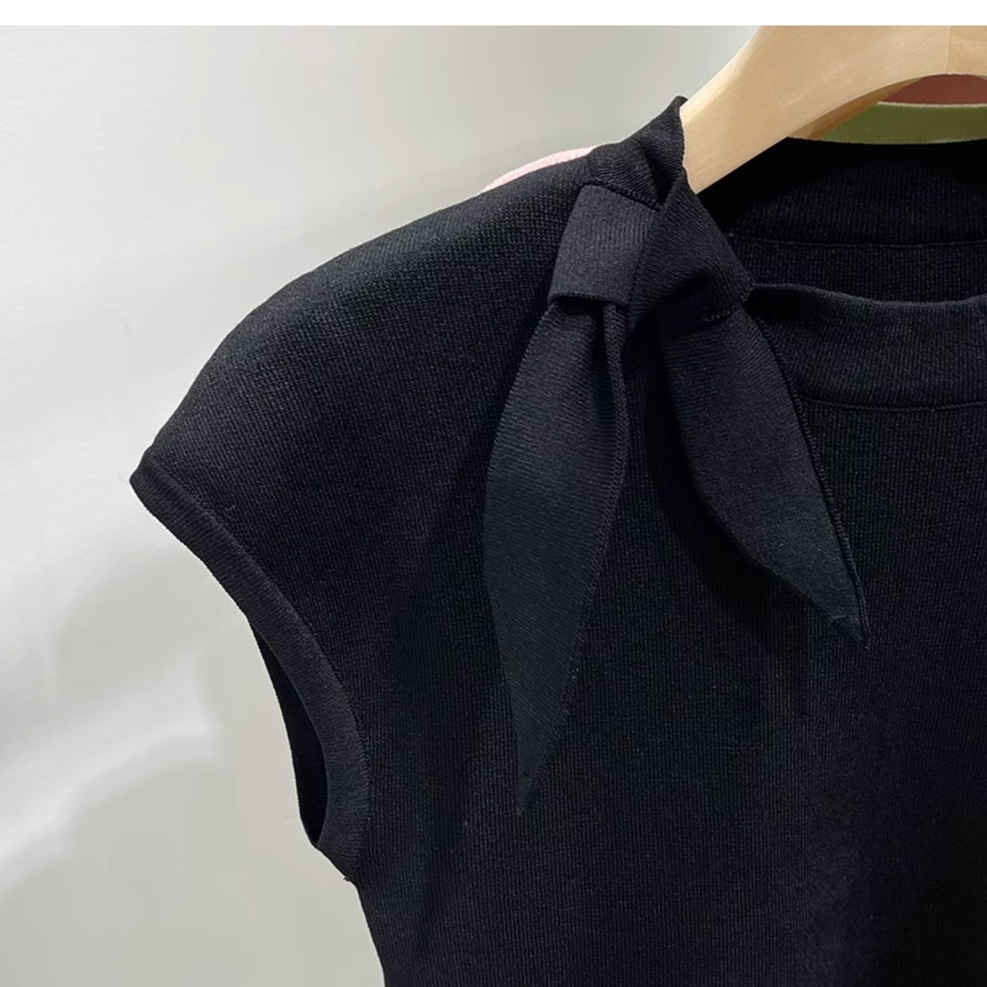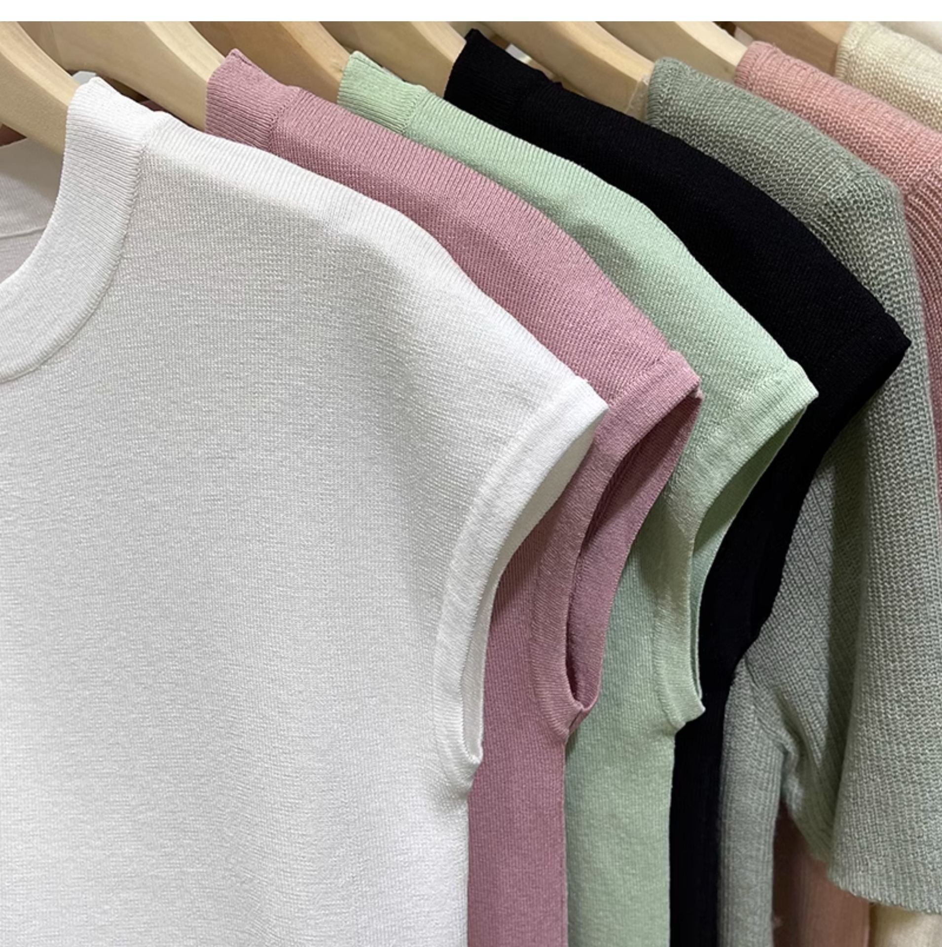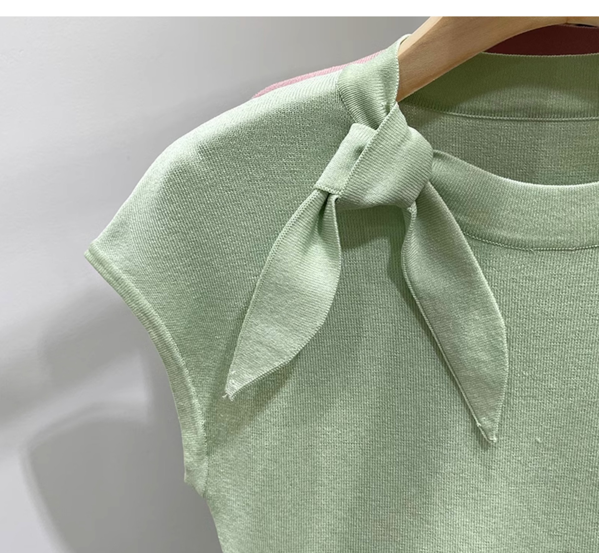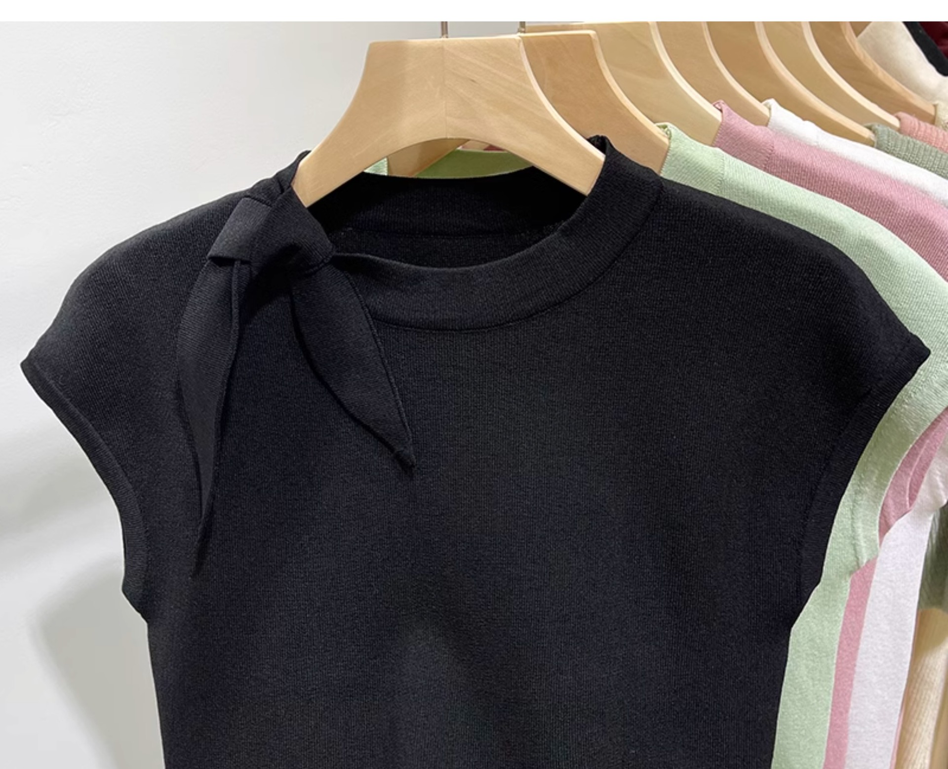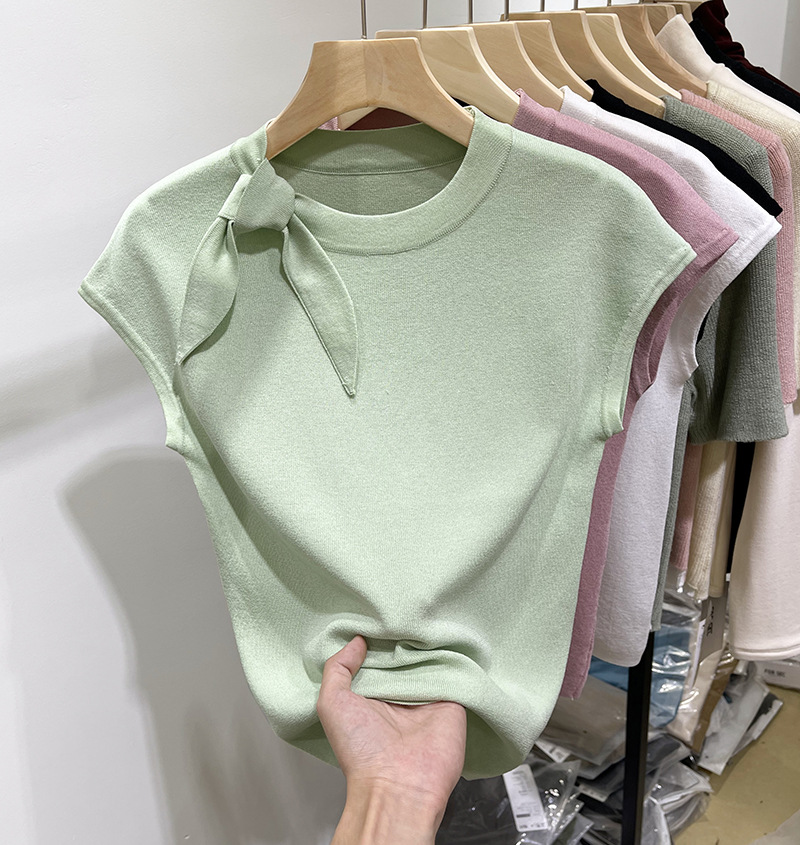 스트랩 크루 넥 아이스 실크 반팔 니트 티셔츠 여성 여름 2024 새로운 슬림 핏 올 매치 플라잉 슬리브 셔츠 탑스토어 가기