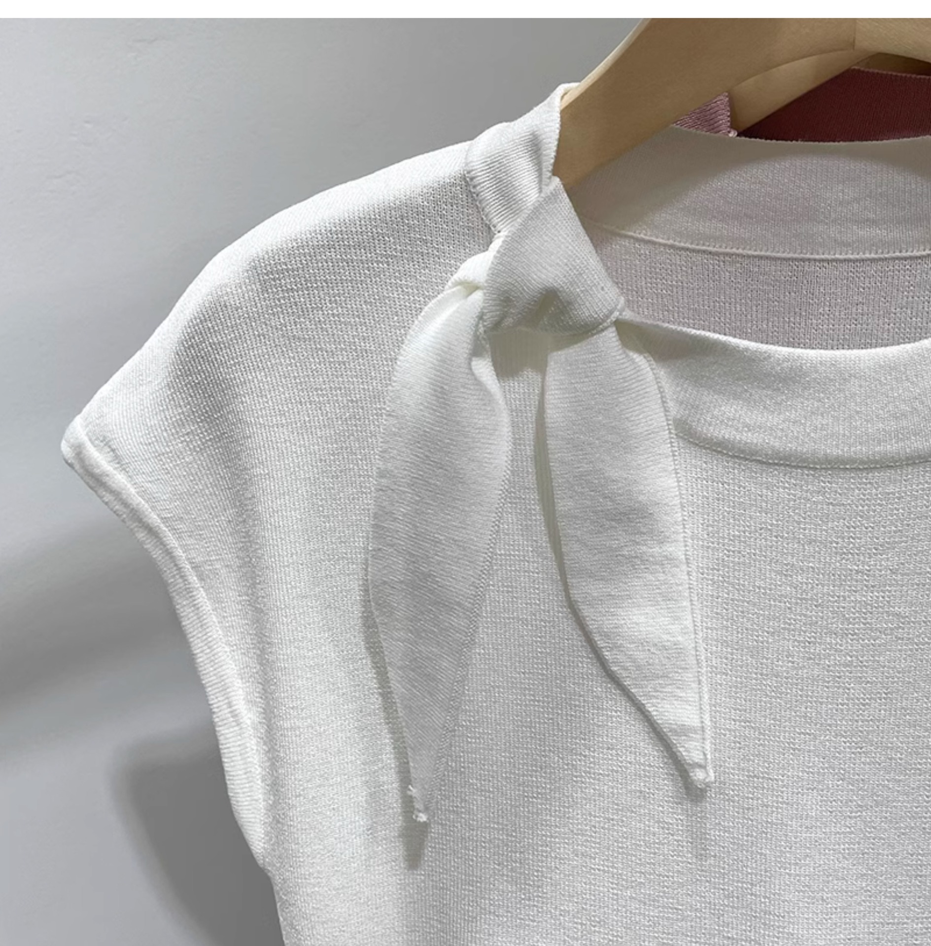 스트랩 크루 넥 아이스 실크 반팔 니트 티셔츠 여성 여름 2024 새로운 슬림 핏 올 매치 플라잉 슬리브 셔츠 탑