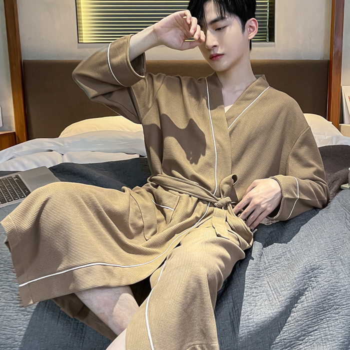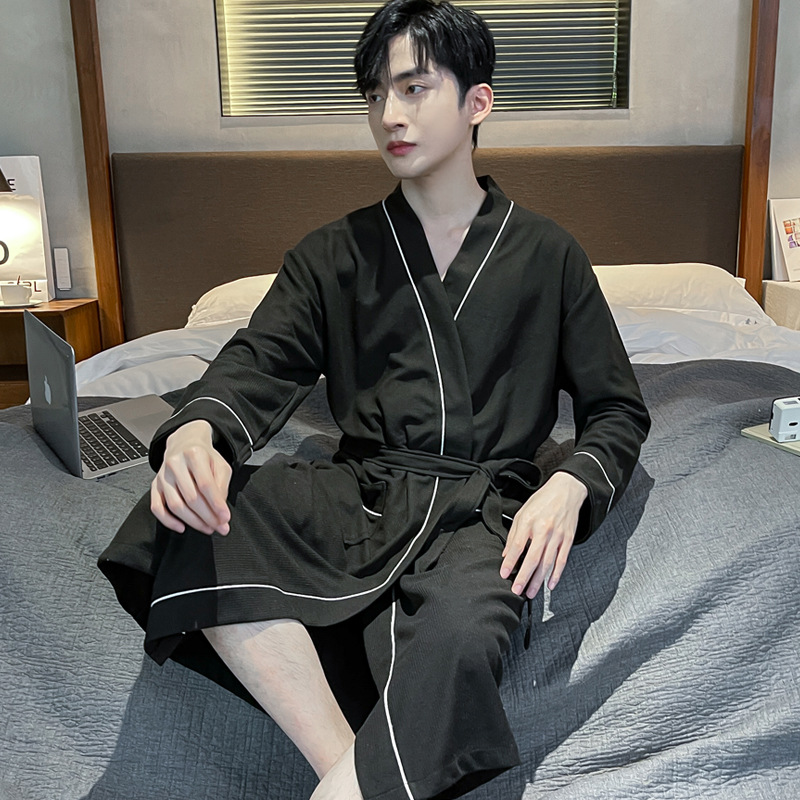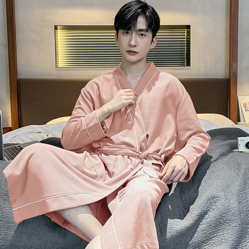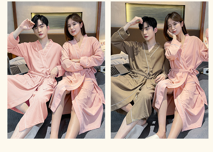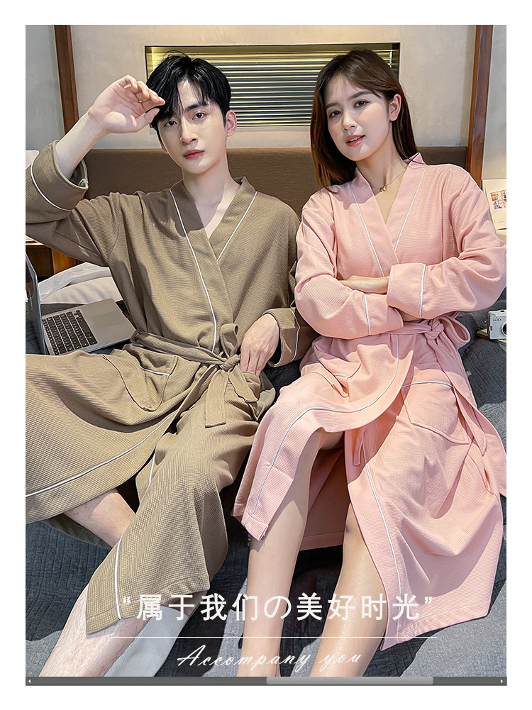 커플 잠옷 여성의 겨울 순면 잠옷 가을 2024 새로운 긴 소매 남성 목욕 가운 중간 길이의 봄과 가을 홈 옷스토어 가기