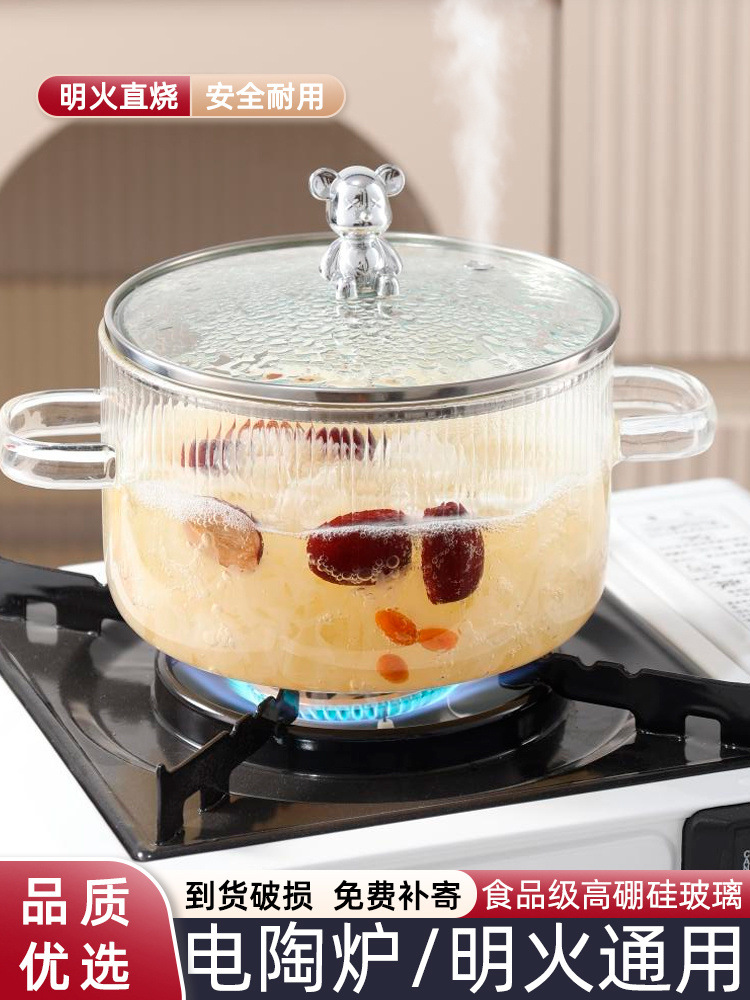 높은 붕규산 유리 냄비 내열성 및 내화성 가정용 작은 냄비 수프 냄비 쌀 죽 냄비 유리 수프 냄비 전기 세라믹 스토브 사용 가능스토어 가기