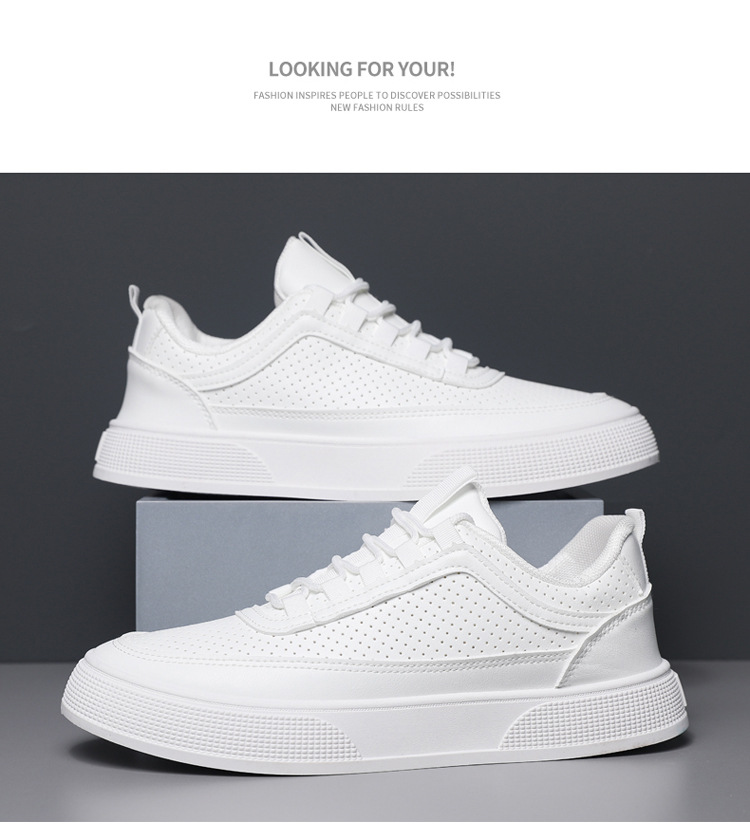 흰색 신발 남성용 봄 가죽 천공 캐주얼 신발 유행 낮은 버전 운동화 남성용 두꺼운 바닥 편안한 부드러운 하단 보드 신발스토어 가기