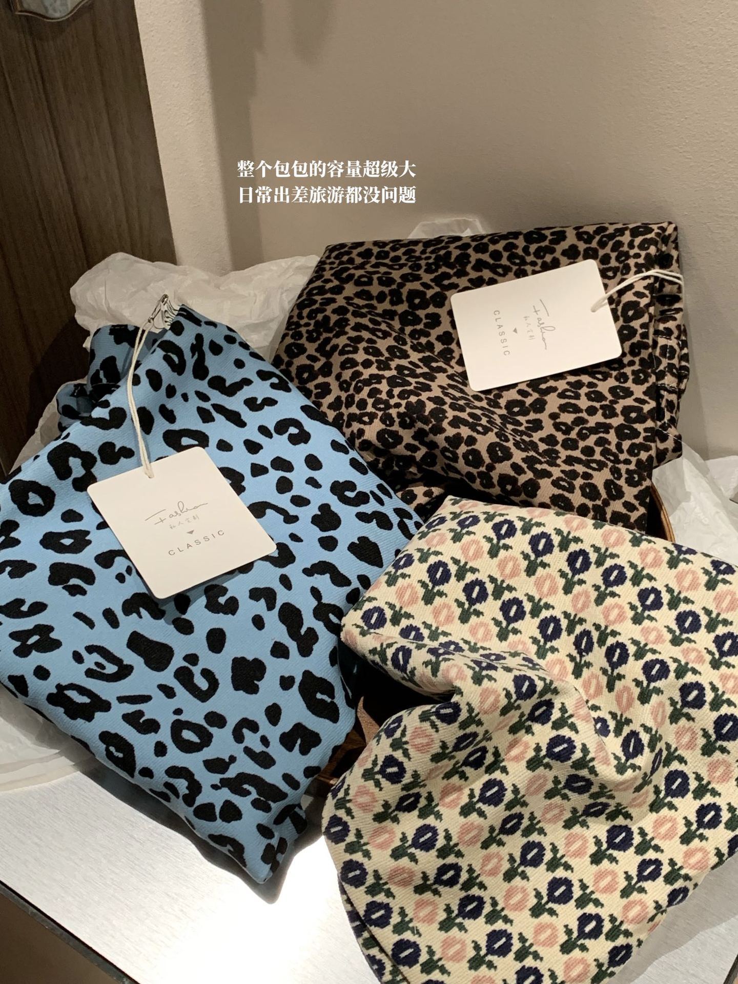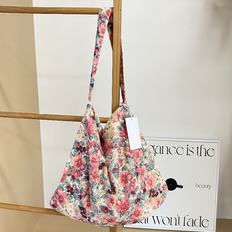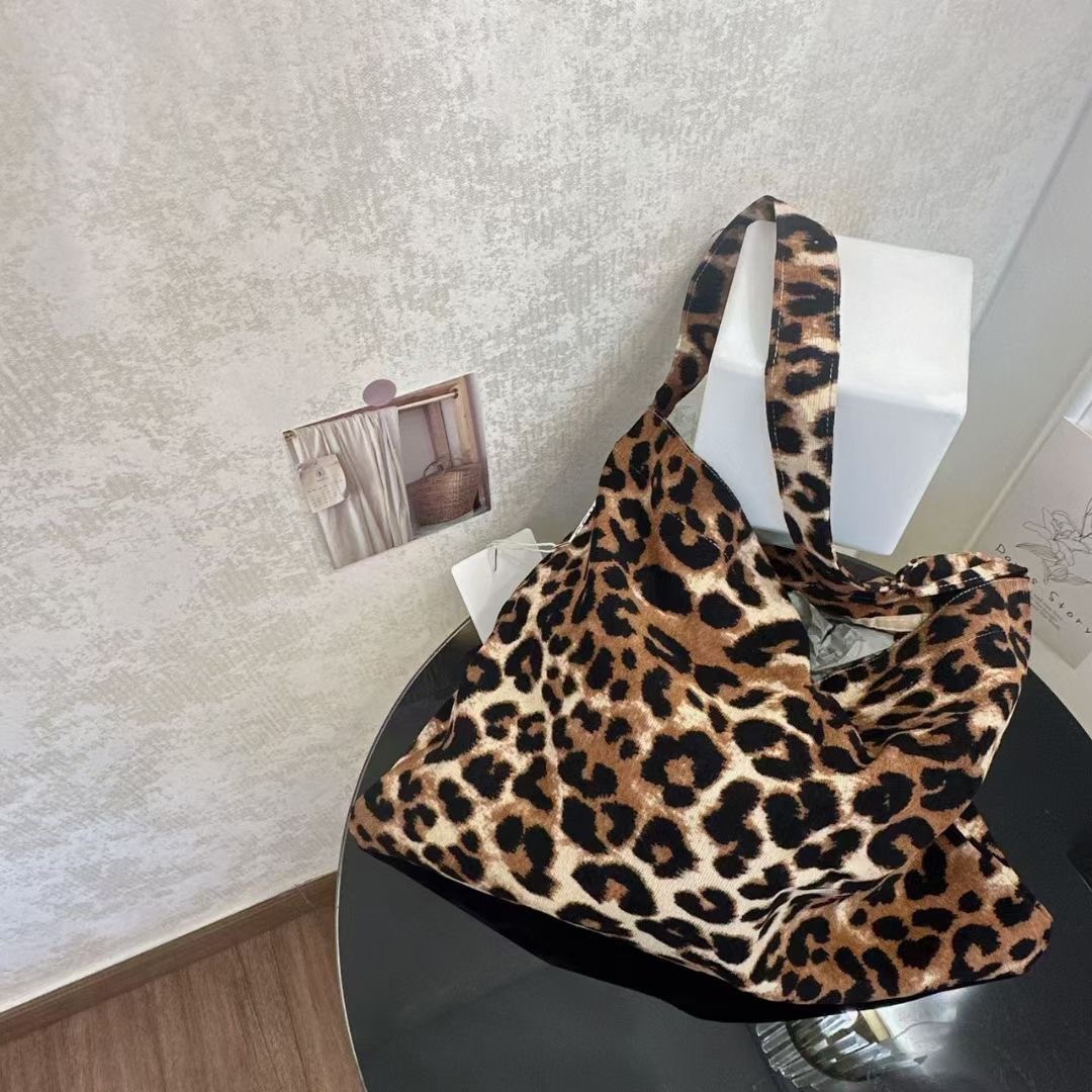 한국 캔버스 가방 동대문 자오 루시 같은 스타일 레오파드 코듀로이 숄더 백 올 매치 쇼핑백스토어 가기