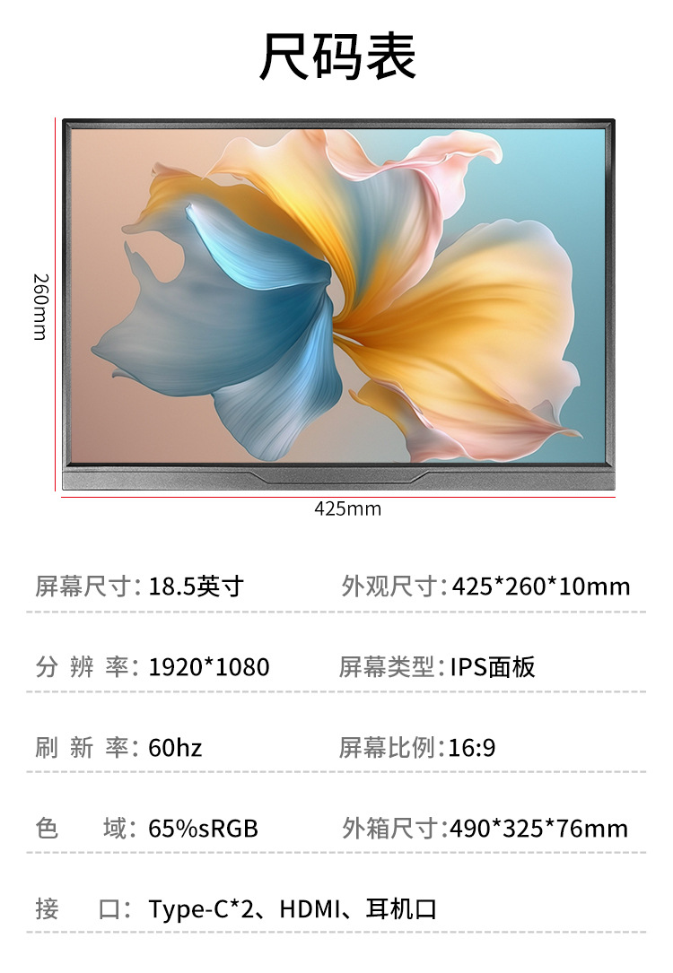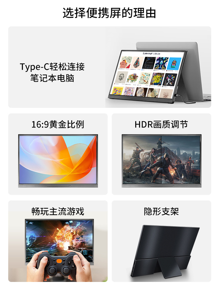 18.5inch 휴대용 디스플레이 Type-C 직접 연결 노트북 보조 화면 컴퓨터 확장 화면 PS/witch 휴대용 화면