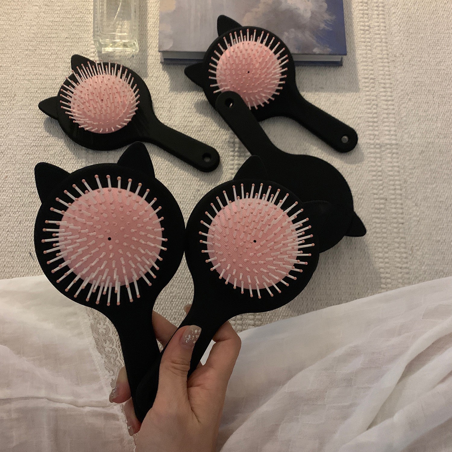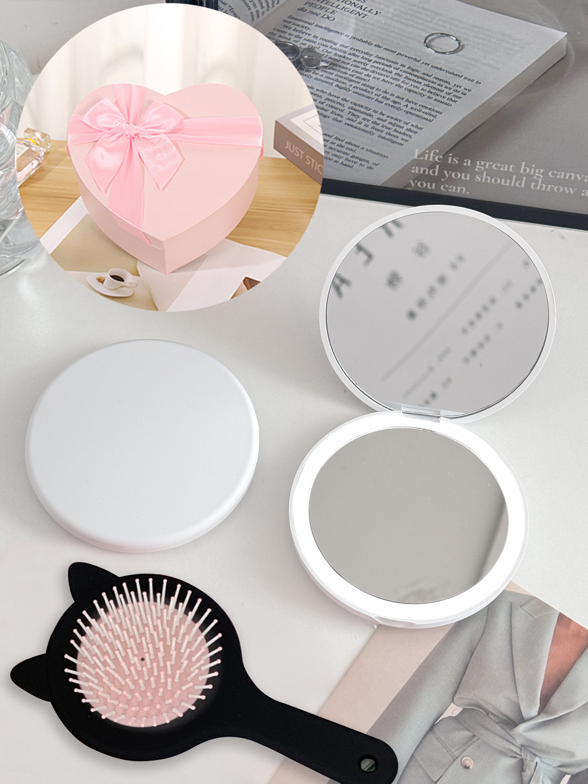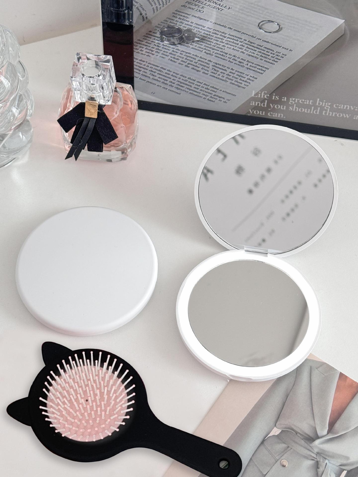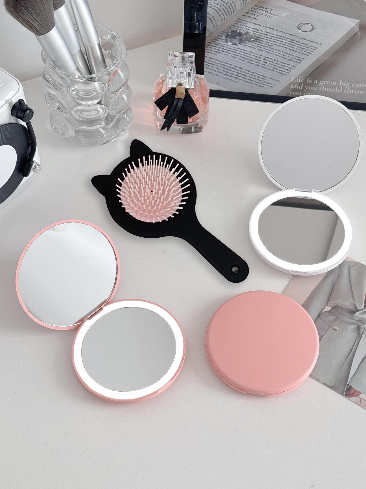 • ☆★【B 세트】 화이트 LED 조명 거울 + 고양이 귀 에어백 브러쉬☆★