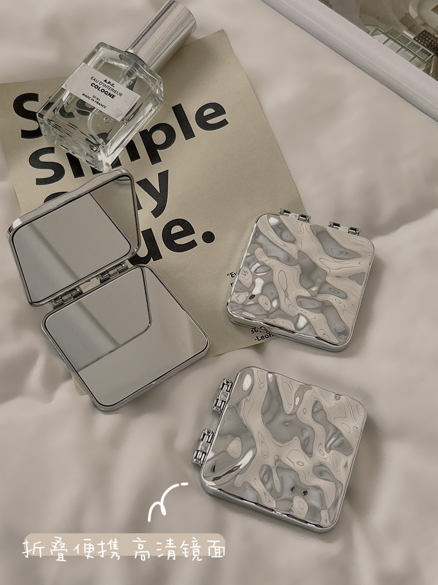 • ☆★【물결 무늬】 실버 (접이식 양면 거울)☆★