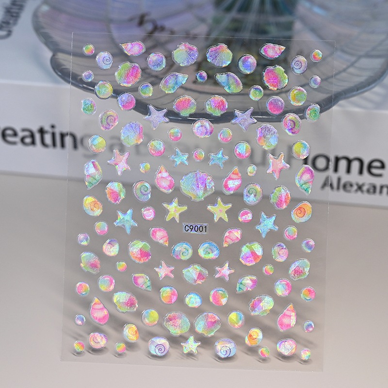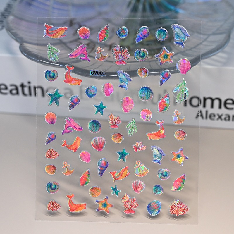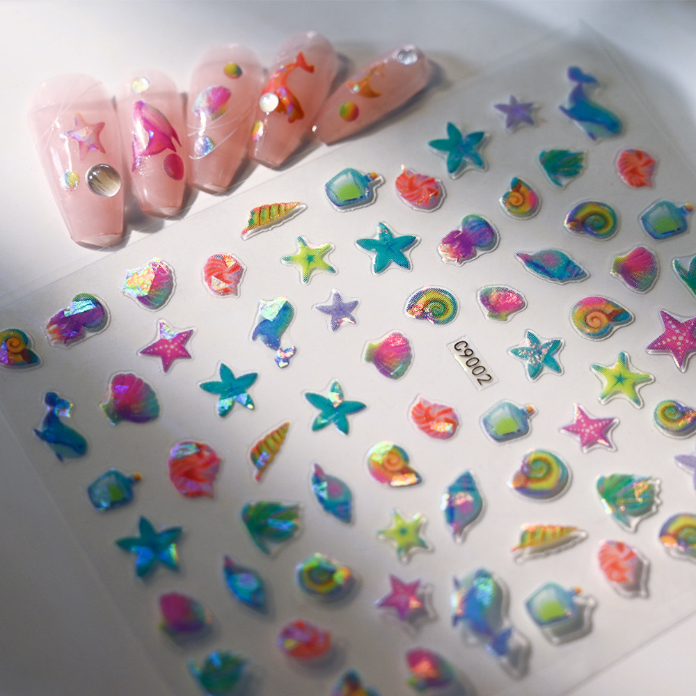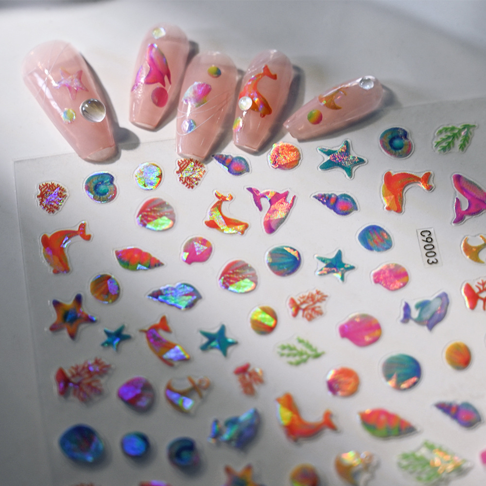 새로운 바다 테마 네일 아트 스티커 돌고래 해파리 불가사리 쉘 여성 네일 장식 접착 네일 아트 스티커