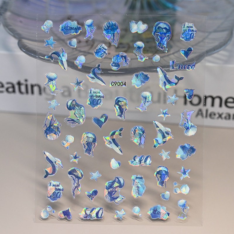 새로운 바다 테마 네일 아트 스티커 돌고래 해파리 불가사리 쉘 여성 네일 장식 접착 네일 아트 스티커스토어 가기