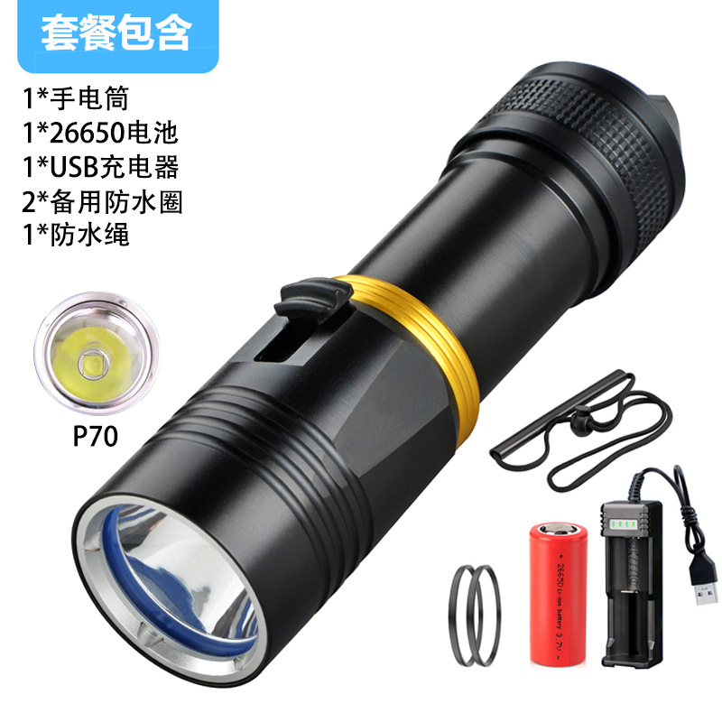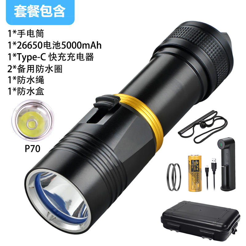국경 간 새로운 다이빙 손전등 p70 강한 빛 야외 슈퍼 밝은 충전식 LED 다이빙 운전 바다 조명 다이빙 조명