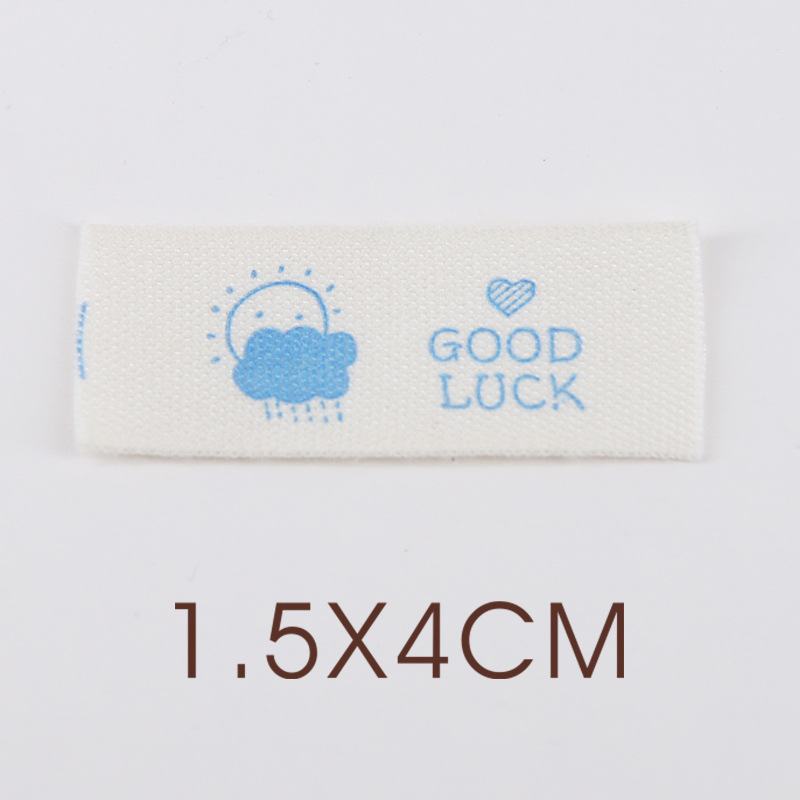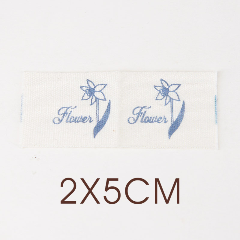 재고 수제 다크 블루 라이트 블루 꽃 태양 구름 웃는 활면 천 라벨 액세서리 사이드 라벨 반으로 접혀
