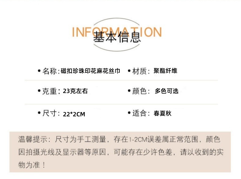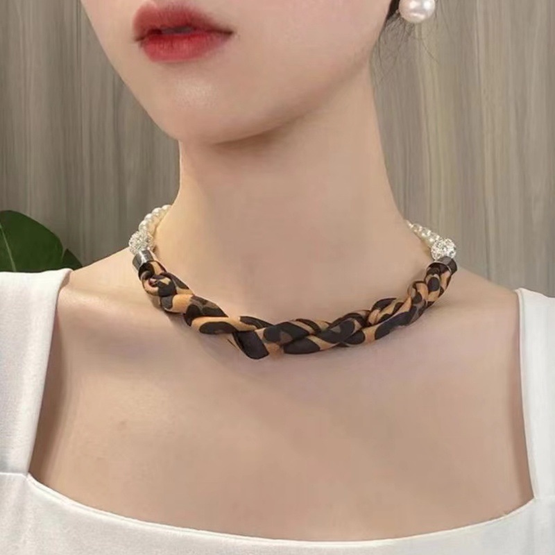 이동식 목 팔찌 다기능 자석 버클 작은 실크 스카프 유행 우아한 진주 올 매치 목 보호 목걸이 실크 스카프