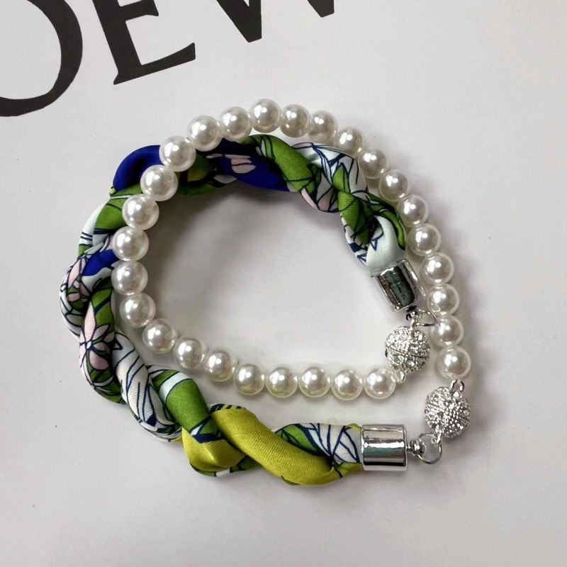 이동식 목 팔찌 다기능 자석 버클 작은 실크 스카프 유행 우아한 진주 올 매치 목 보호 목걸이 실크 스카프스토어 가기