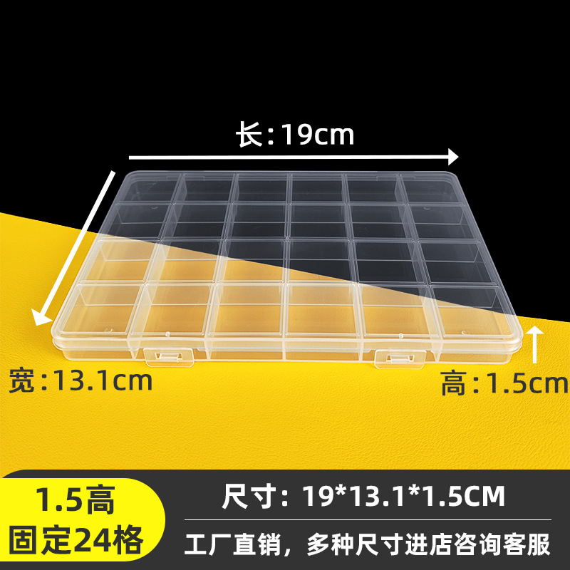 1.5 높은 고정 24 그리드 투명 저장 상자 pp 플라스틱 상자 DIY 팔찌 보석 상자 보관 요약 마무리 상자