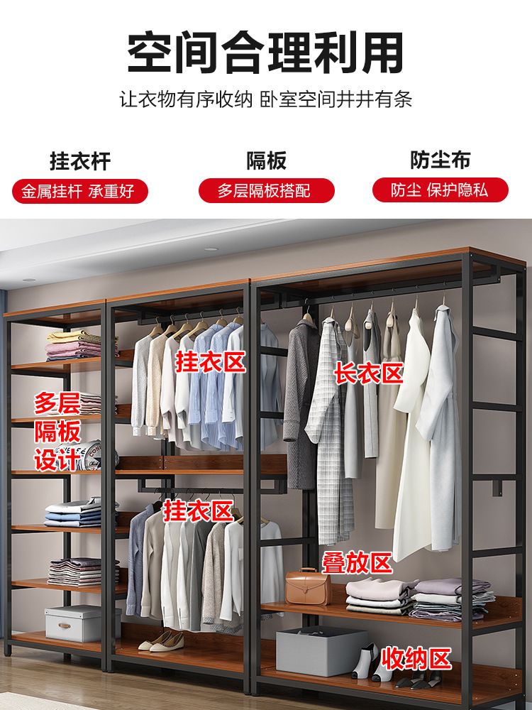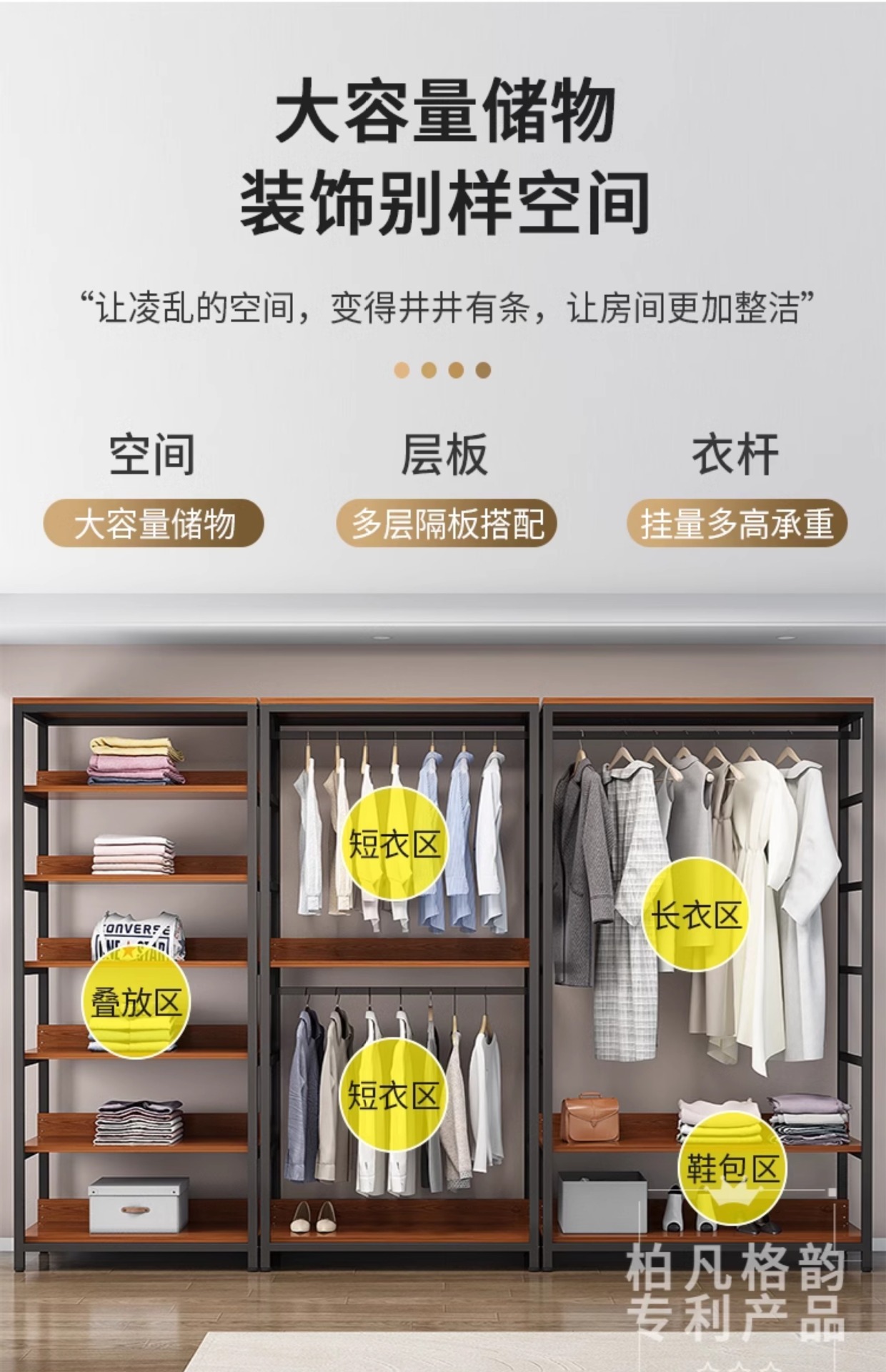 워크 인 코트 랙 침실 선반 조합 옷장 바닥 금속 옷걸이 가정용 간단한 오픈 신제품스토어 가기