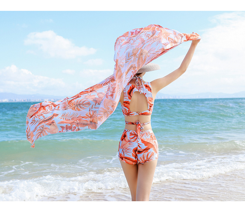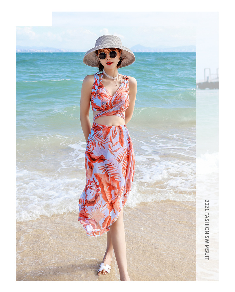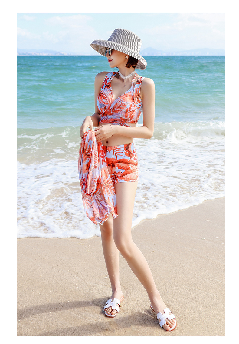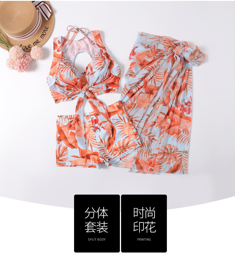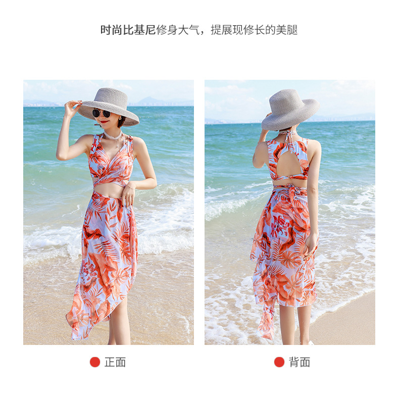 2024 새로운 수영복 여성 비키니 3 피스 온천 플랫 앵글 패션 슬림 스플릿 선 스크린 수영복 도매