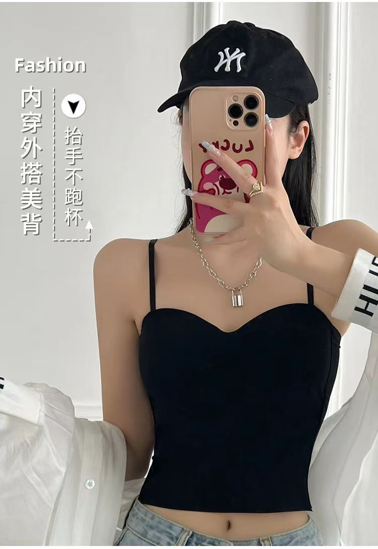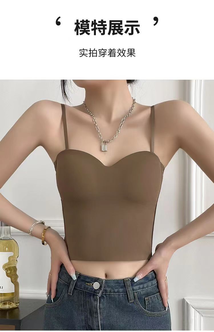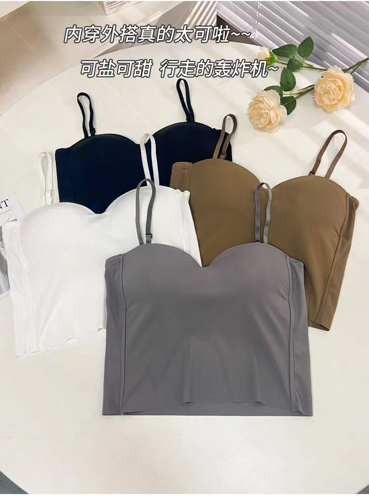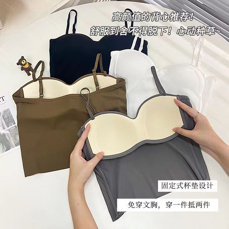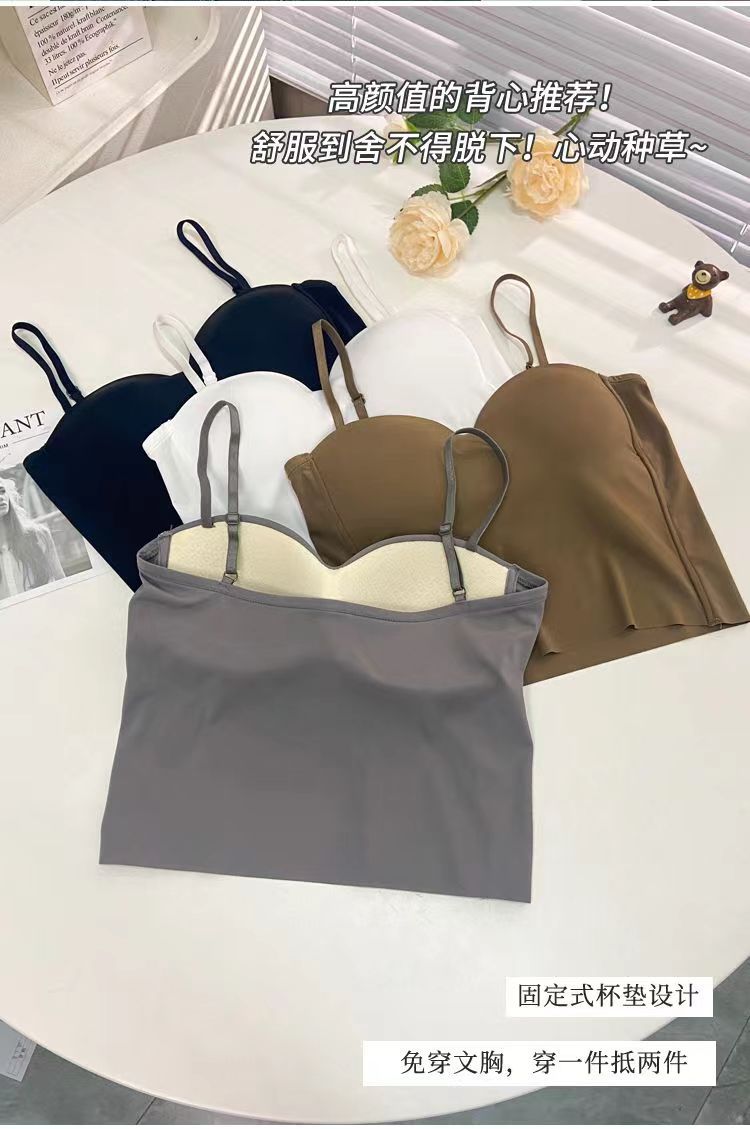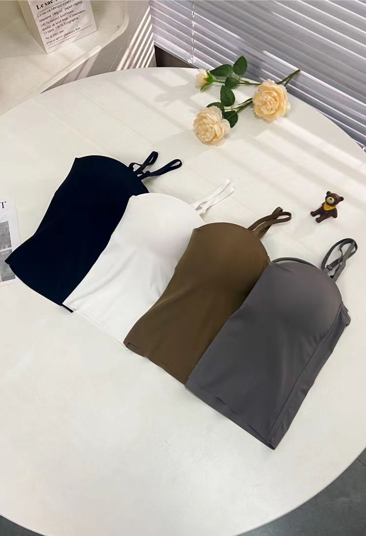봄과 여름 새로운 통기성 아이스 실크 소녀의 캐미솔 고정 컵 꼭 맞는 올 매치 짧은 속옷 브래지어스토어 가기