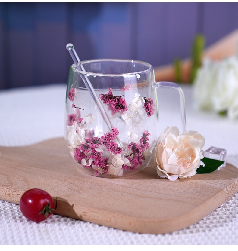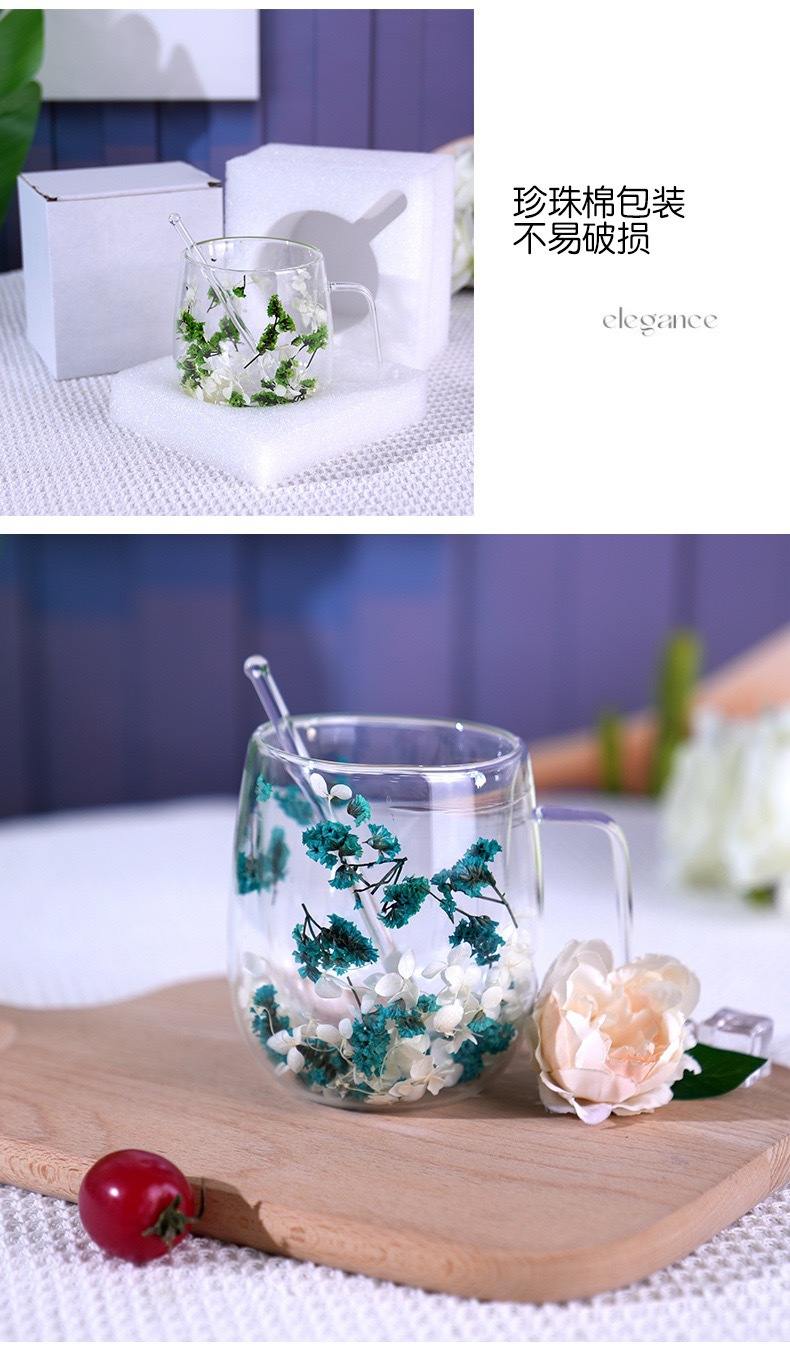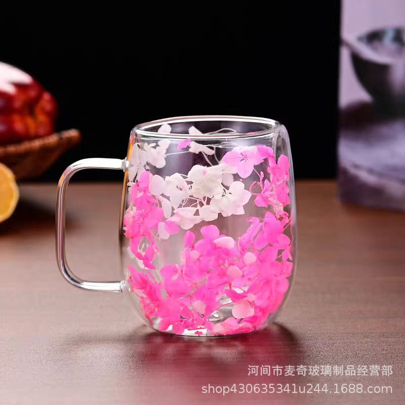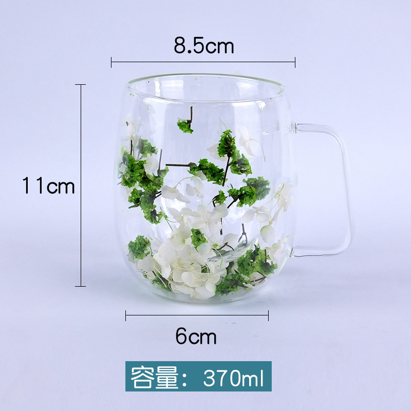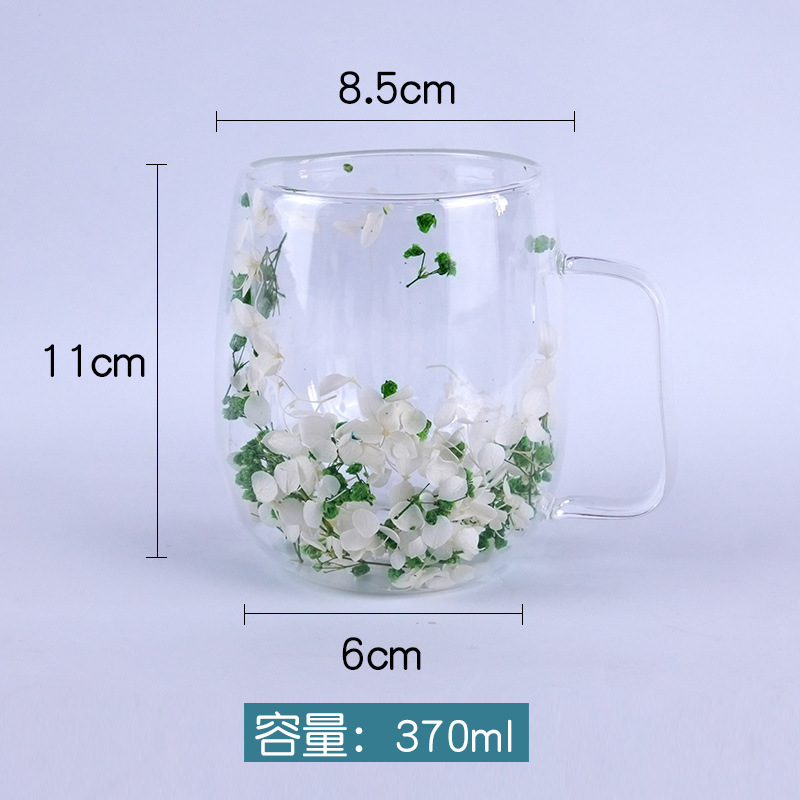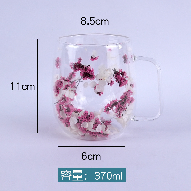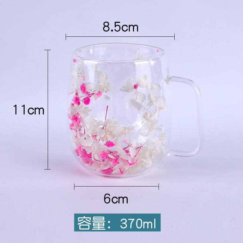 국경 간 도매 이중층 리얼 플라워 유리컵 ins 스타일 기념품 주스컵 가정용 고급 꽃잎 모래시계컵